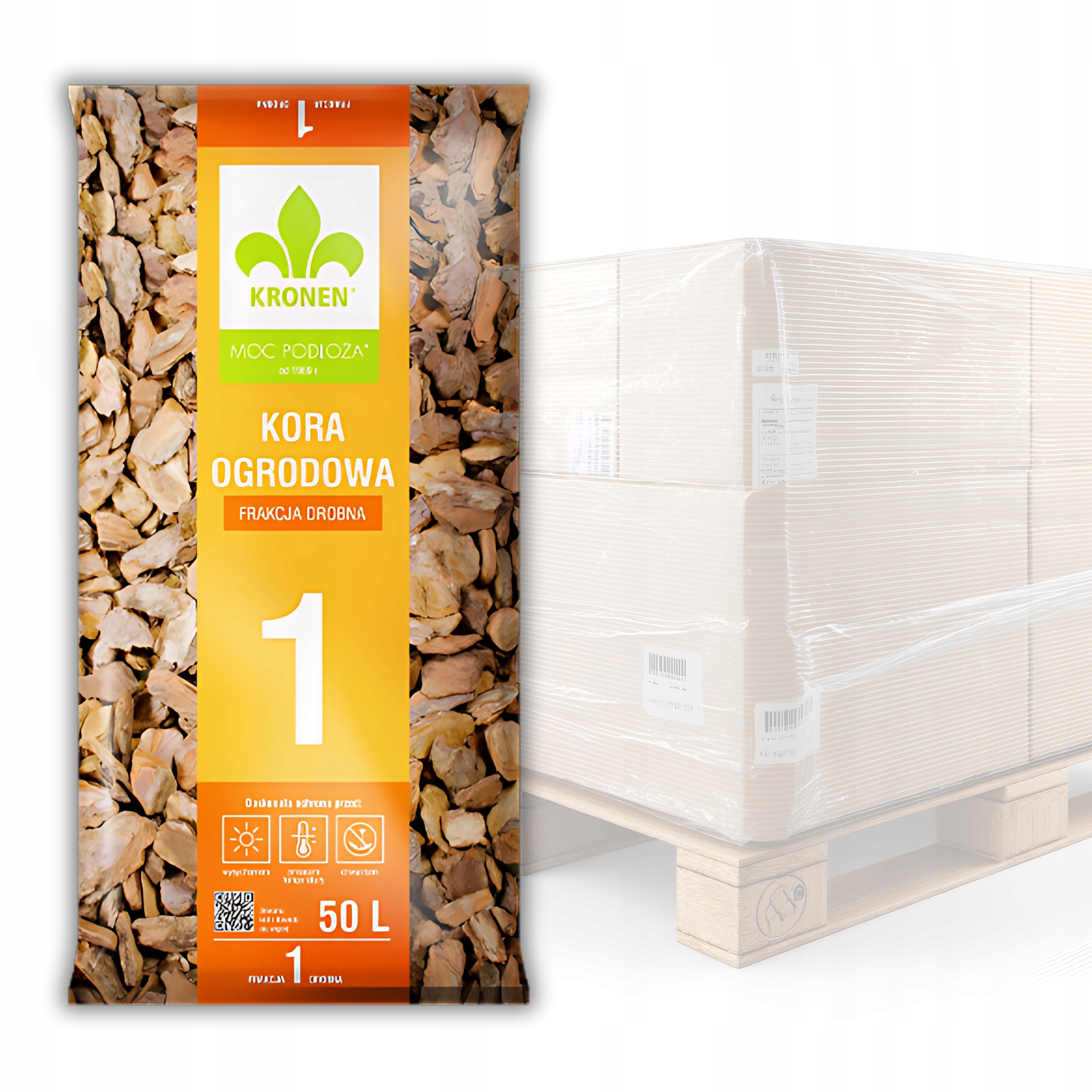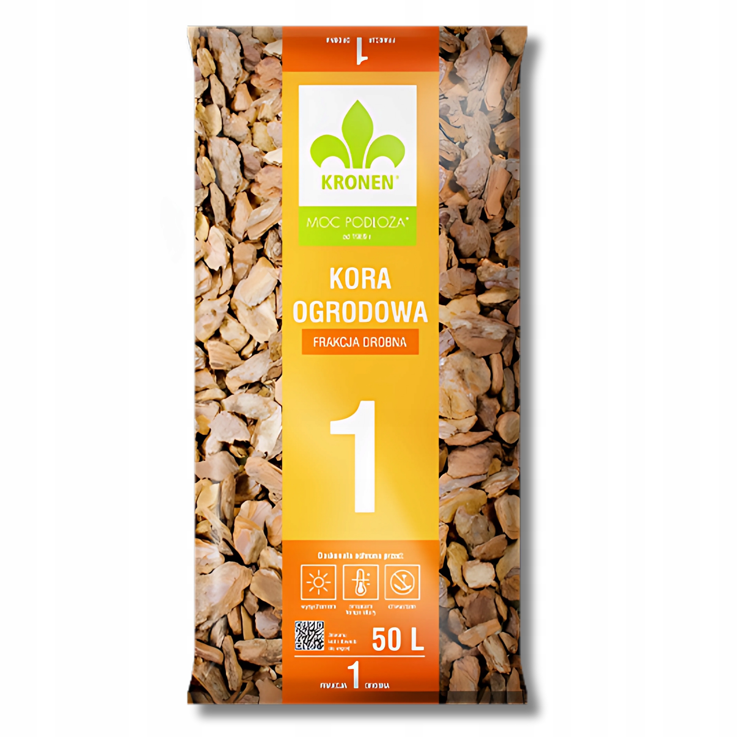 KRONEN® Kora ogrodowa drobna to naturalny, ekologiczny materiał pochodzący z drzew iglastych, przeznaczony do ściółkowania, poprawy struktury gleby oraz dekoracji rabat i donic. Frakcja 8–20 mm (oznaczenie: "1" na opakowaniu) sprawdza się idealnie w ogrodach z niską roślinnością (do 0,5 m wysokości).