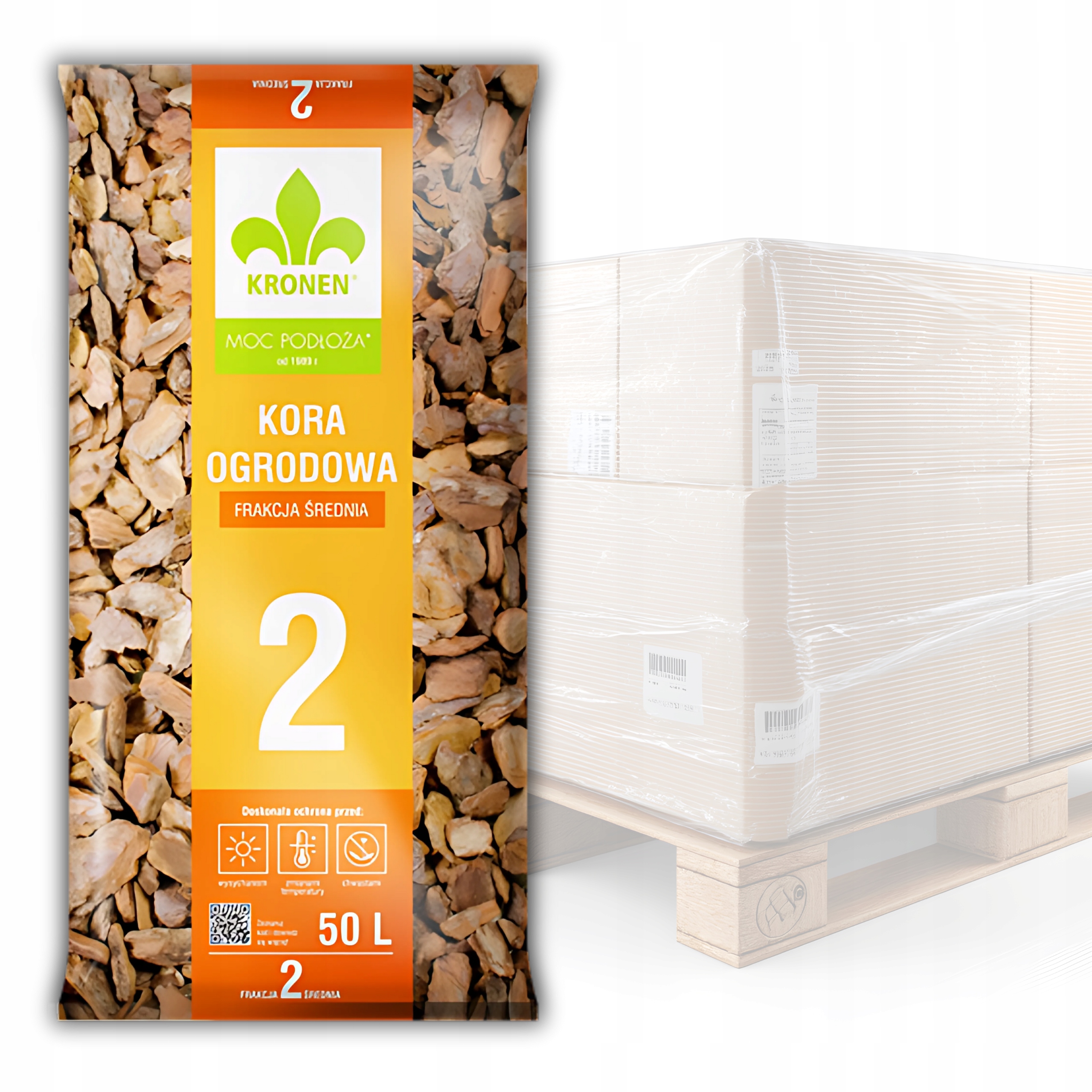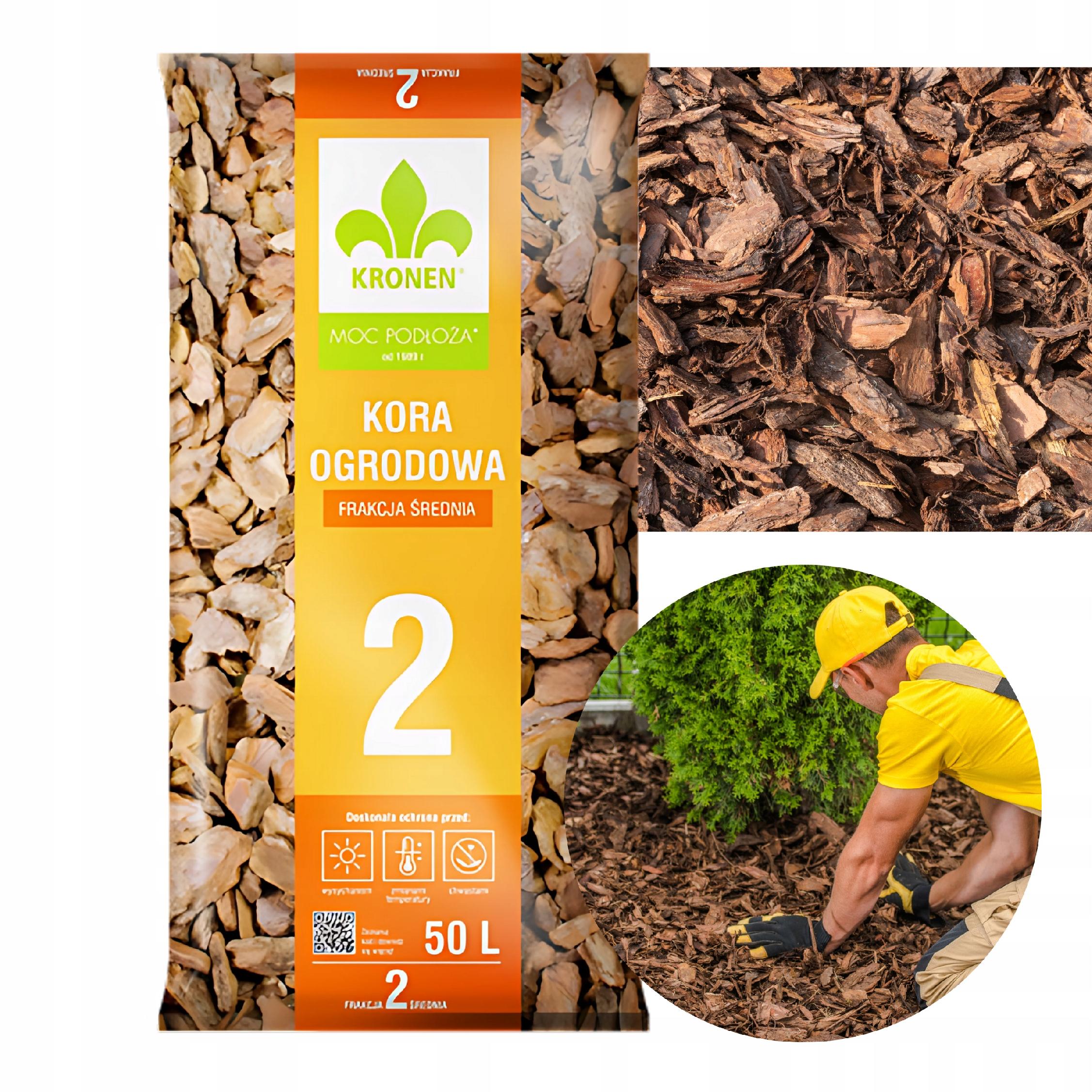 10x KRONEN® Kora Ogrodowa Średnia Mielona 50L – Frakcja 20–40 mm