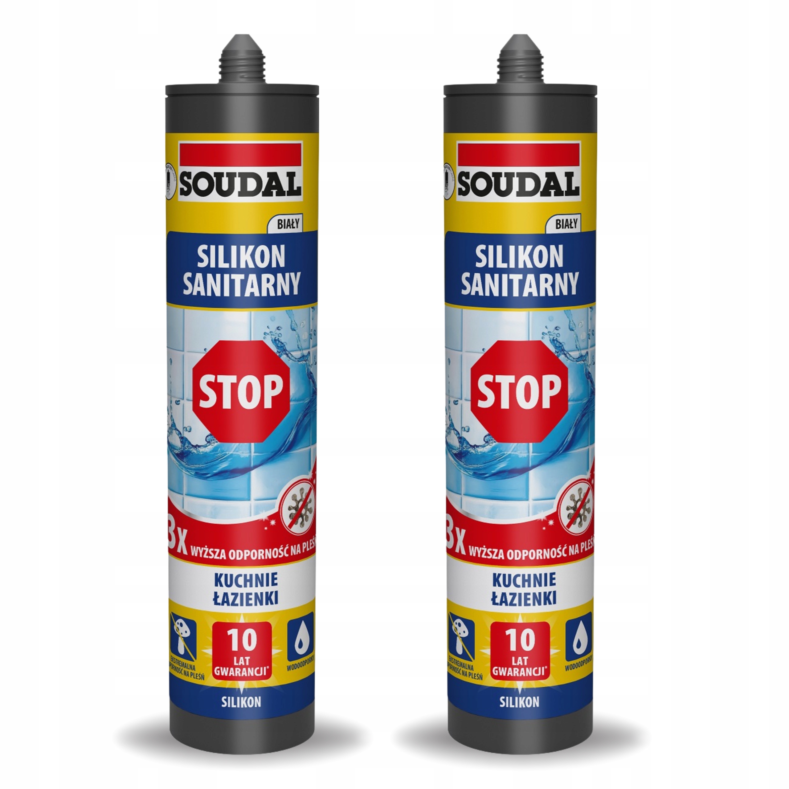2x Silikon sanitarny SOUDAL STOP biały 280 ml – grzybobójczy, super mocny uszczelniacz
