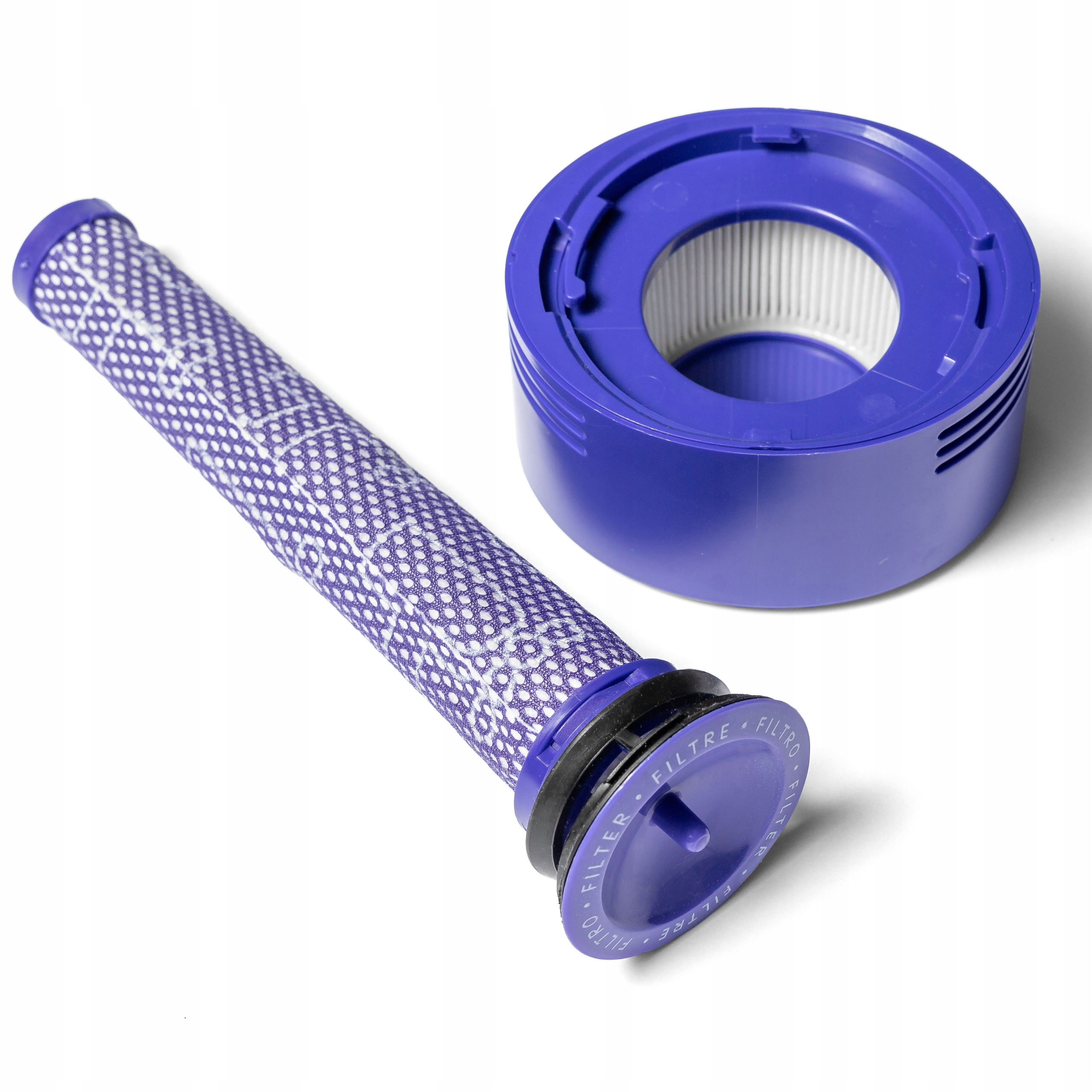Zestaw filtrów przeznaczony do odkurzaczy bezprzewodowych DYSON z serii V7 i V8. Każdy komplet zawiera filtr wstępny oraz filtr HEPA montowany z tyłu silnika, zapewniając pełną filtrację powietrza w urządzeniu.