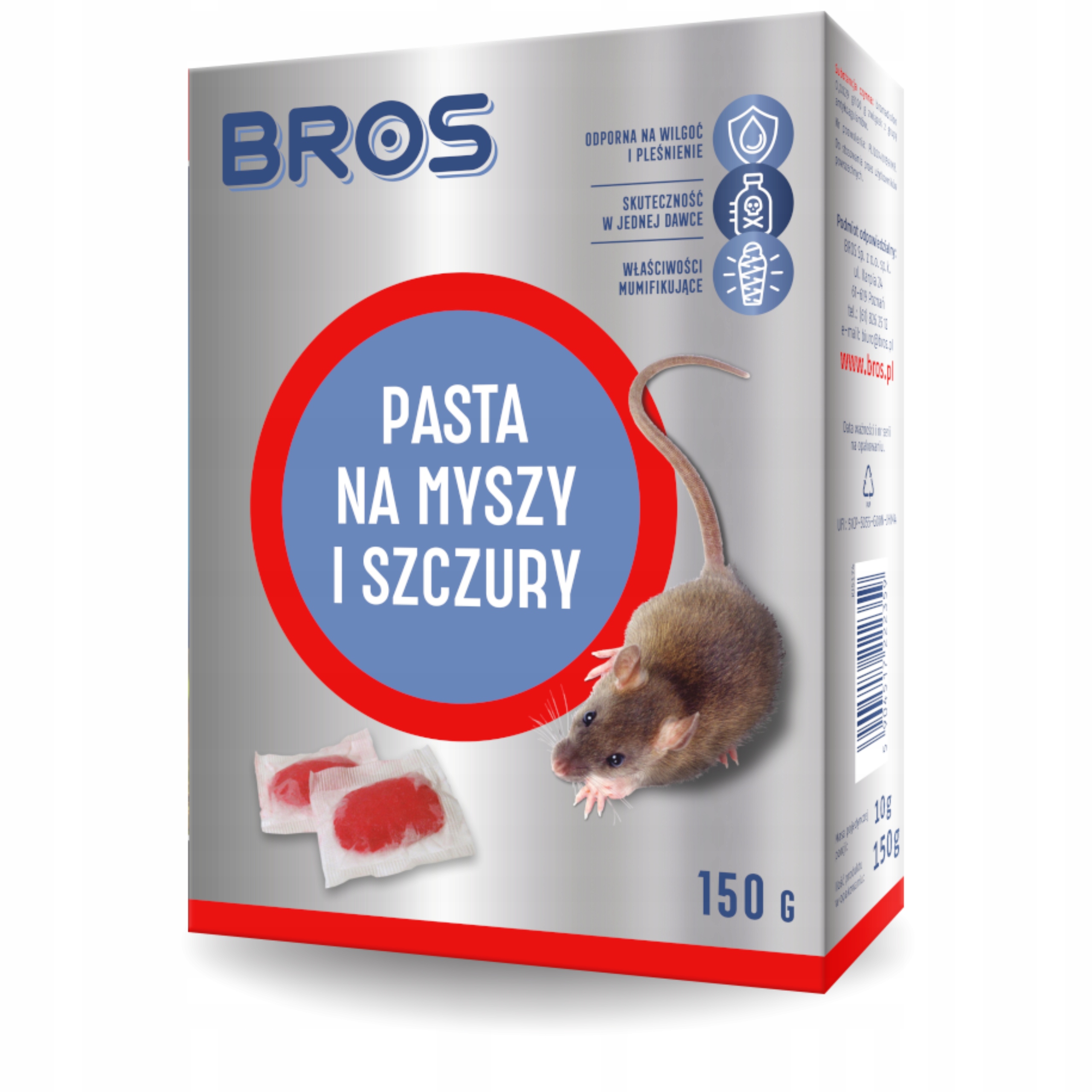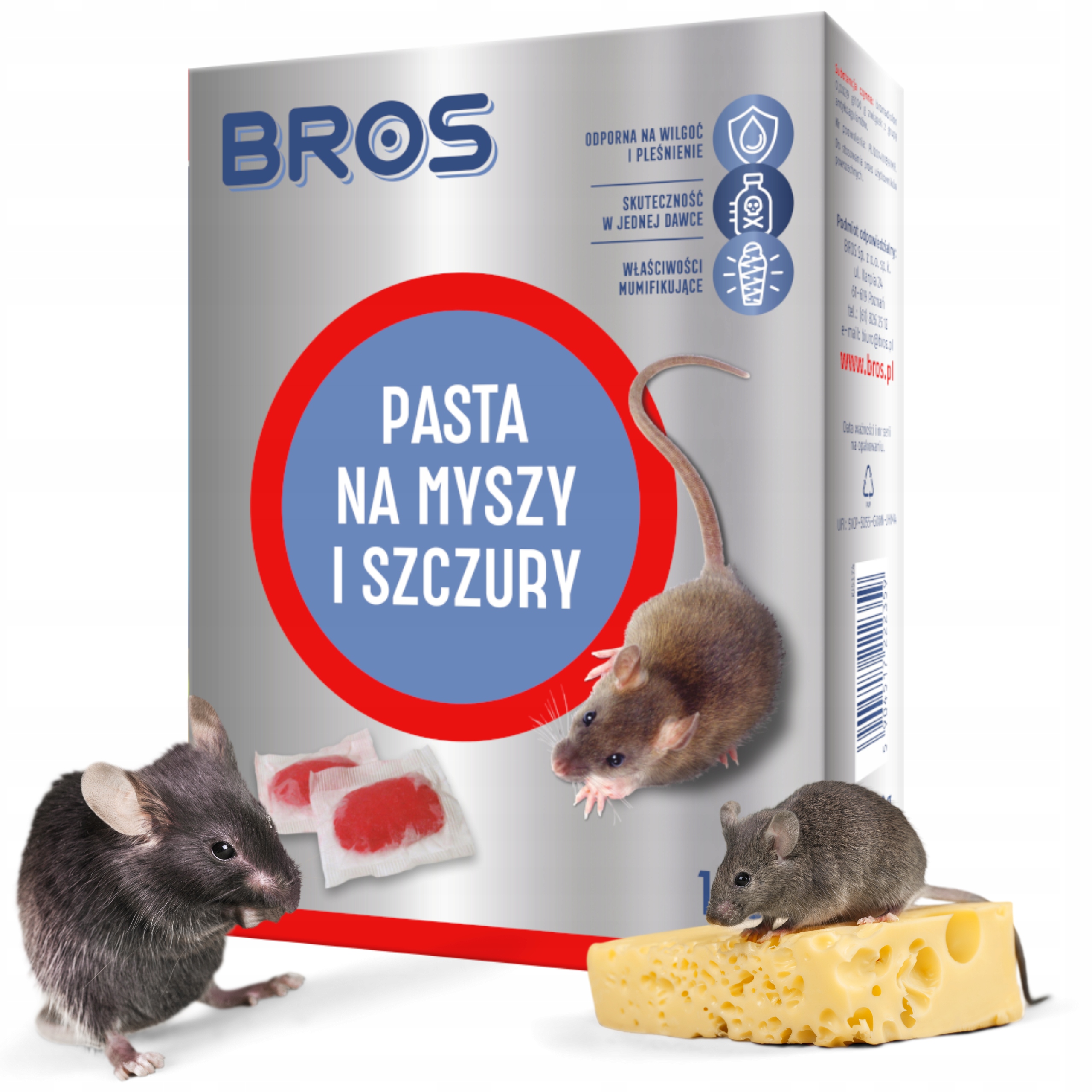BROS Pasta na myszy i szczury to wyjątkowo skuteczna przynęta do zwalczania gryzoni w domach i wokół budynków.