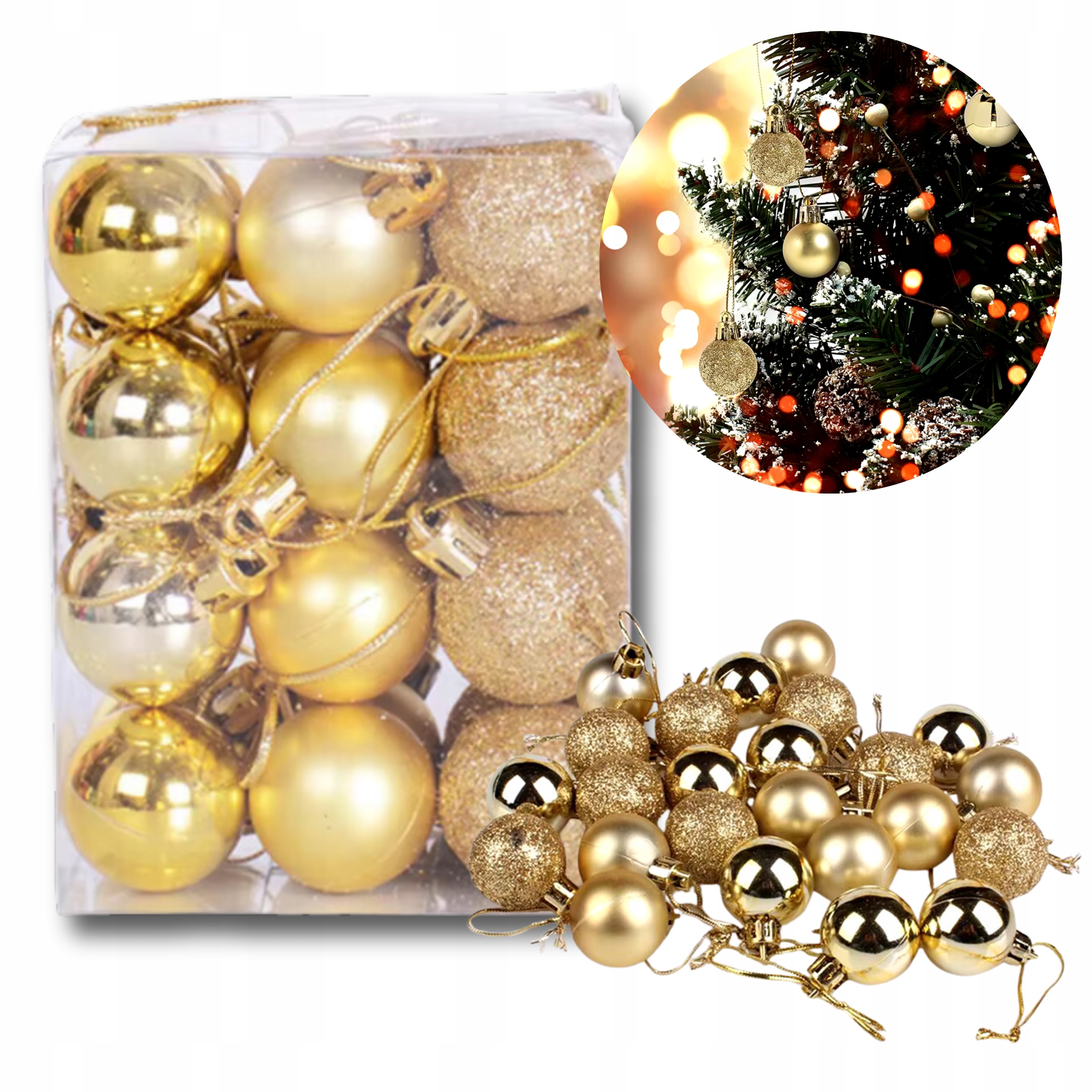 BOMBKI CHOINKOWE 3CM ZESTAW 24 SZT BAŃKI NA CHOINKĘ NIETŁUKĄCE złote