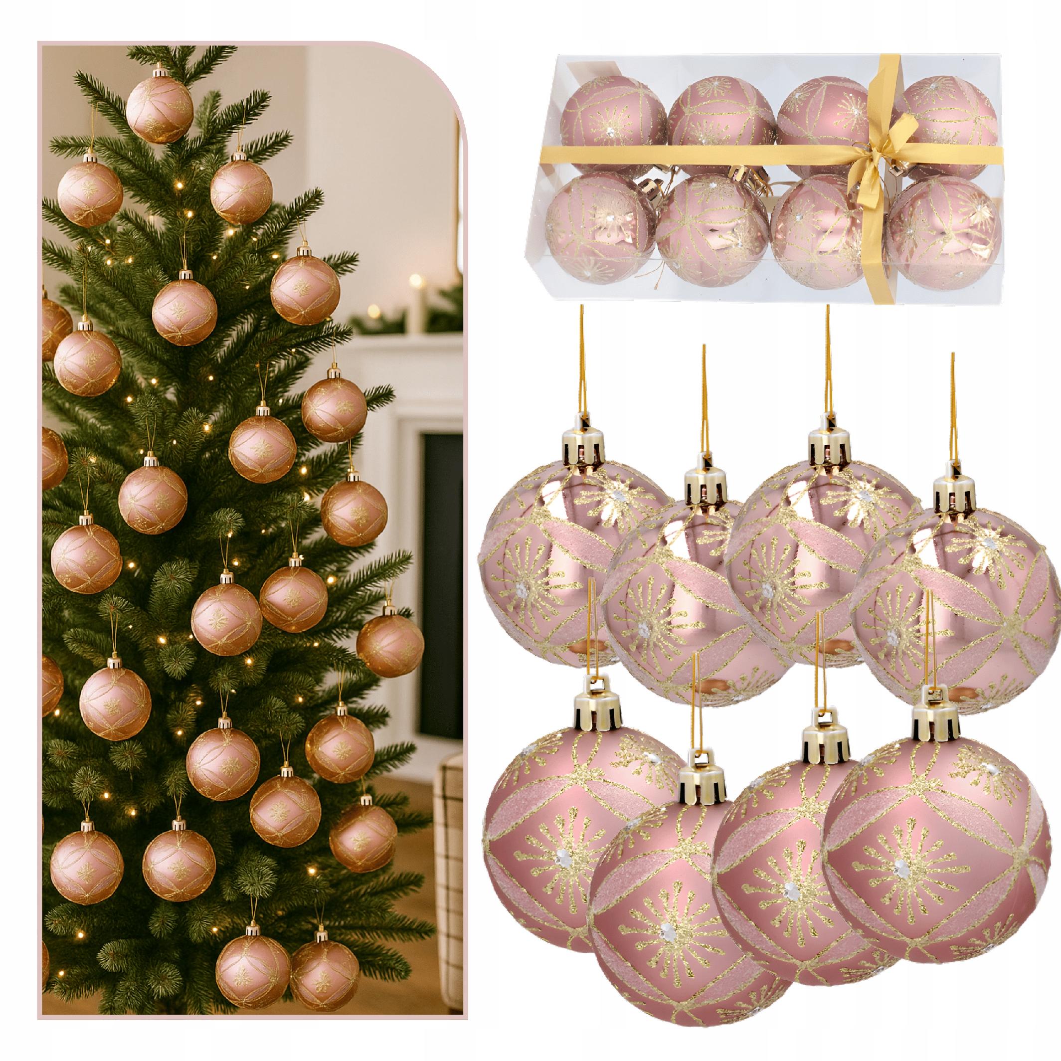 BOMBKI CHOINKOWE RÓŻOWE 6 CM | ZESTAW 8 SZT | NIETŁUKĄCE | MAT + POŁYSK | OZDOBY ŚWIĄTECZNE NA CHOINKĘ
