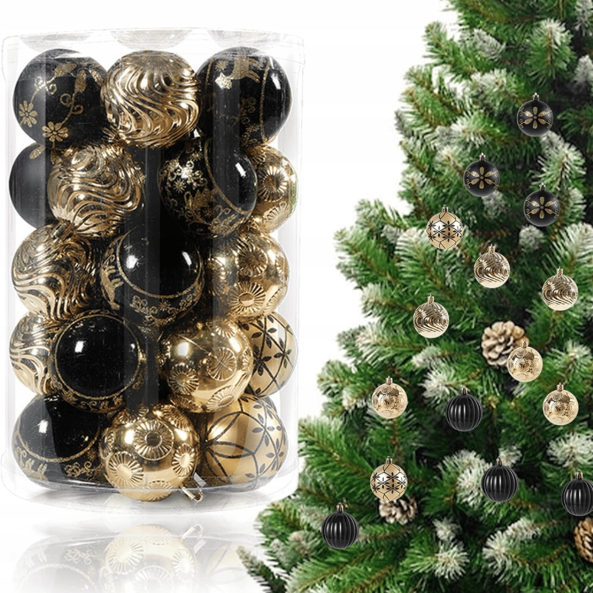 BOMBKI CHOINKOWE NIETŁUKĄCE 30 SZT. – CZARNO-ZŁOTE OZDOBY ŚWIĄTECZNE
