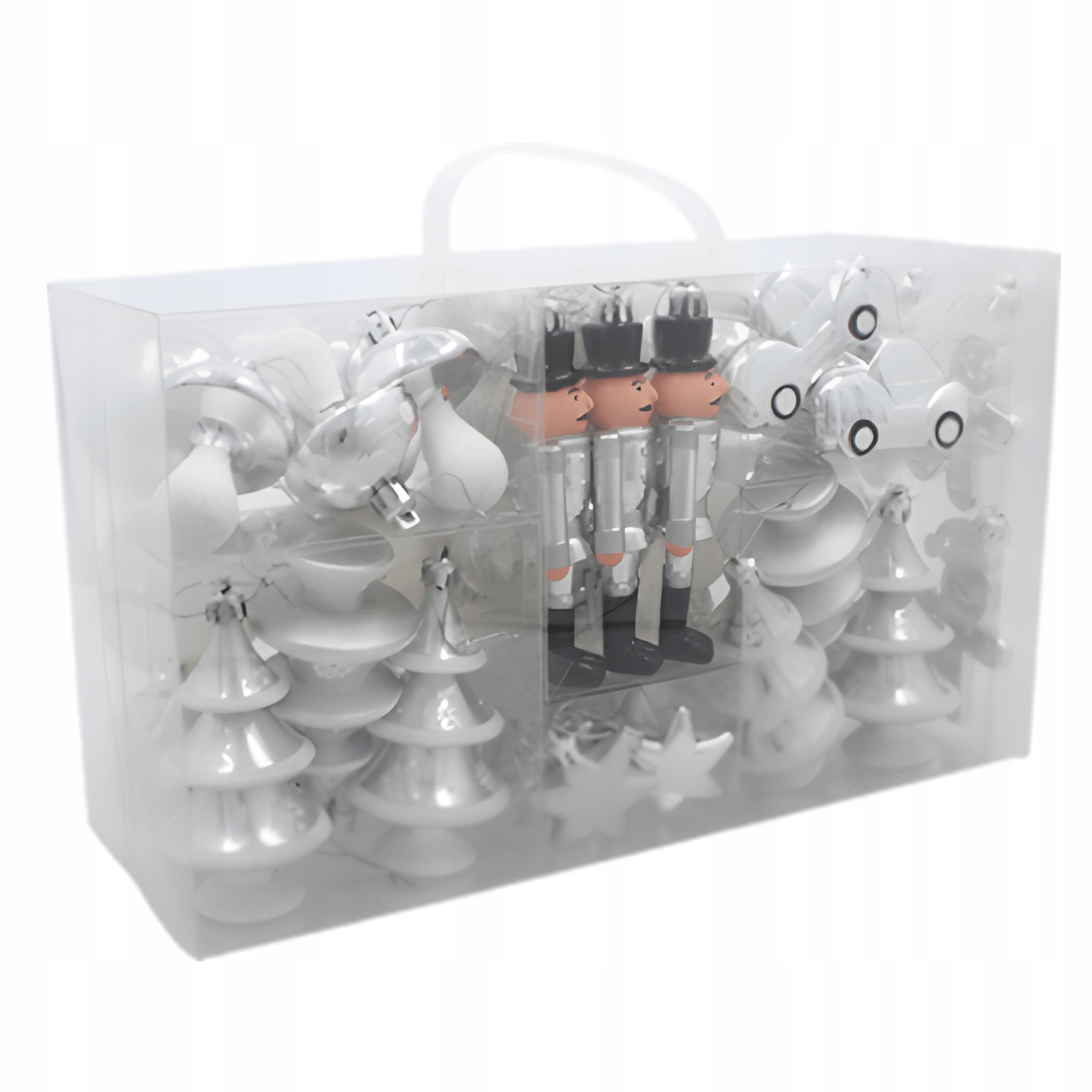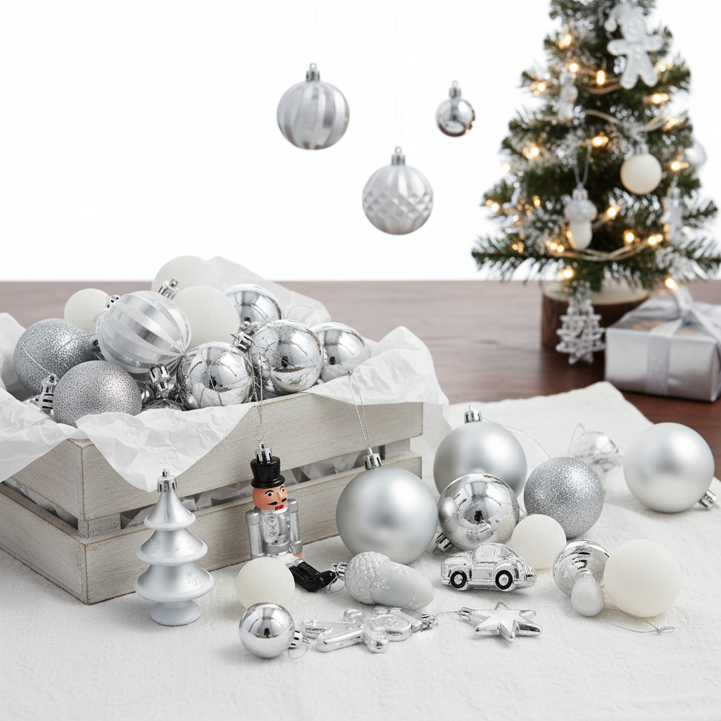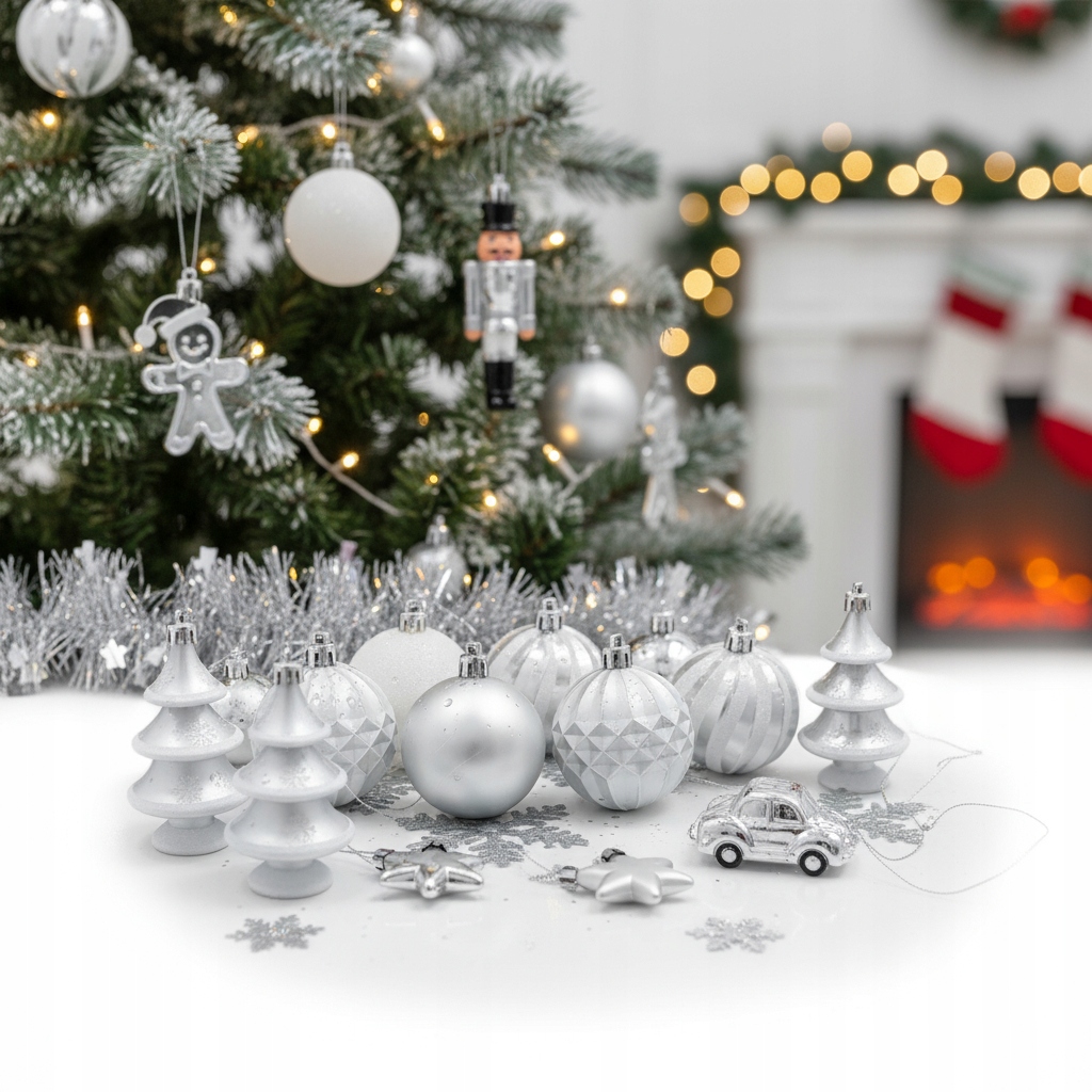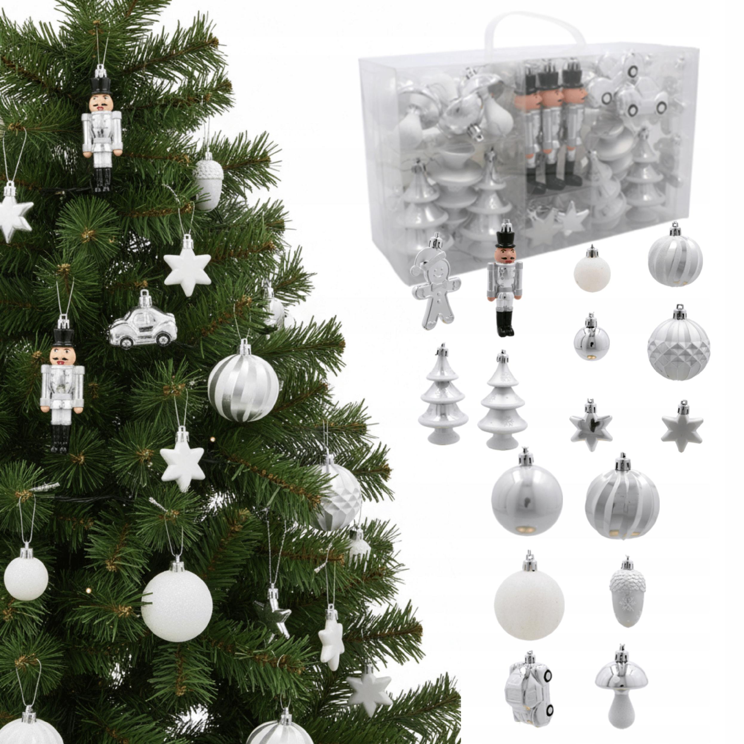 Wprowadź magię świąt do swojego domu z zestawem 50 bombek i ozdób choinkowych XL w klasycznym, srebrnym kolorze!