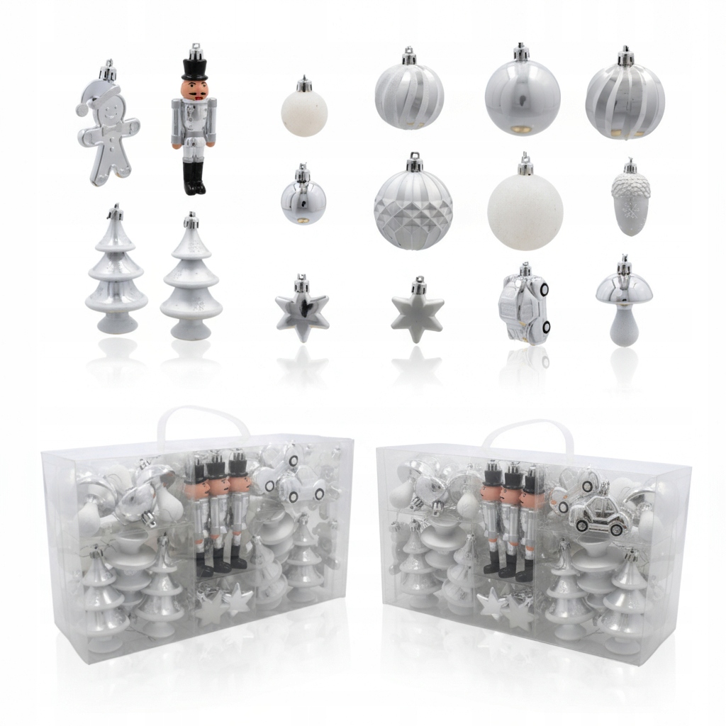 BOMBKI OZDOBY CHOINKOWE ZESTAW XL 50SZT NA CHOINKĘ NIETŁUKĄCE srebrne MIX