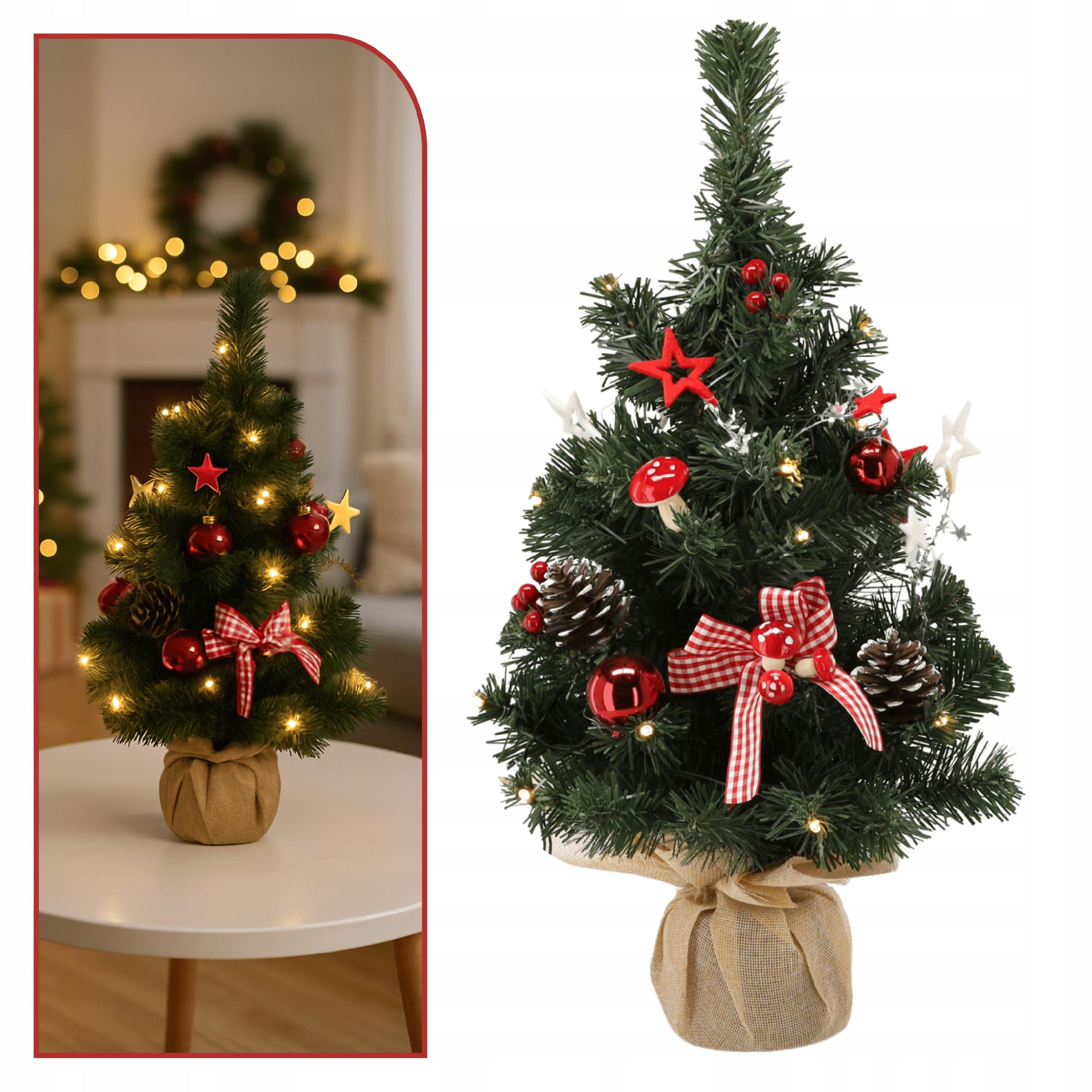 CHOINKA SZTUCZNA 50cm DEKOROWANA 20 LED DO BIURA NA STOLIK MAŁA czerwona