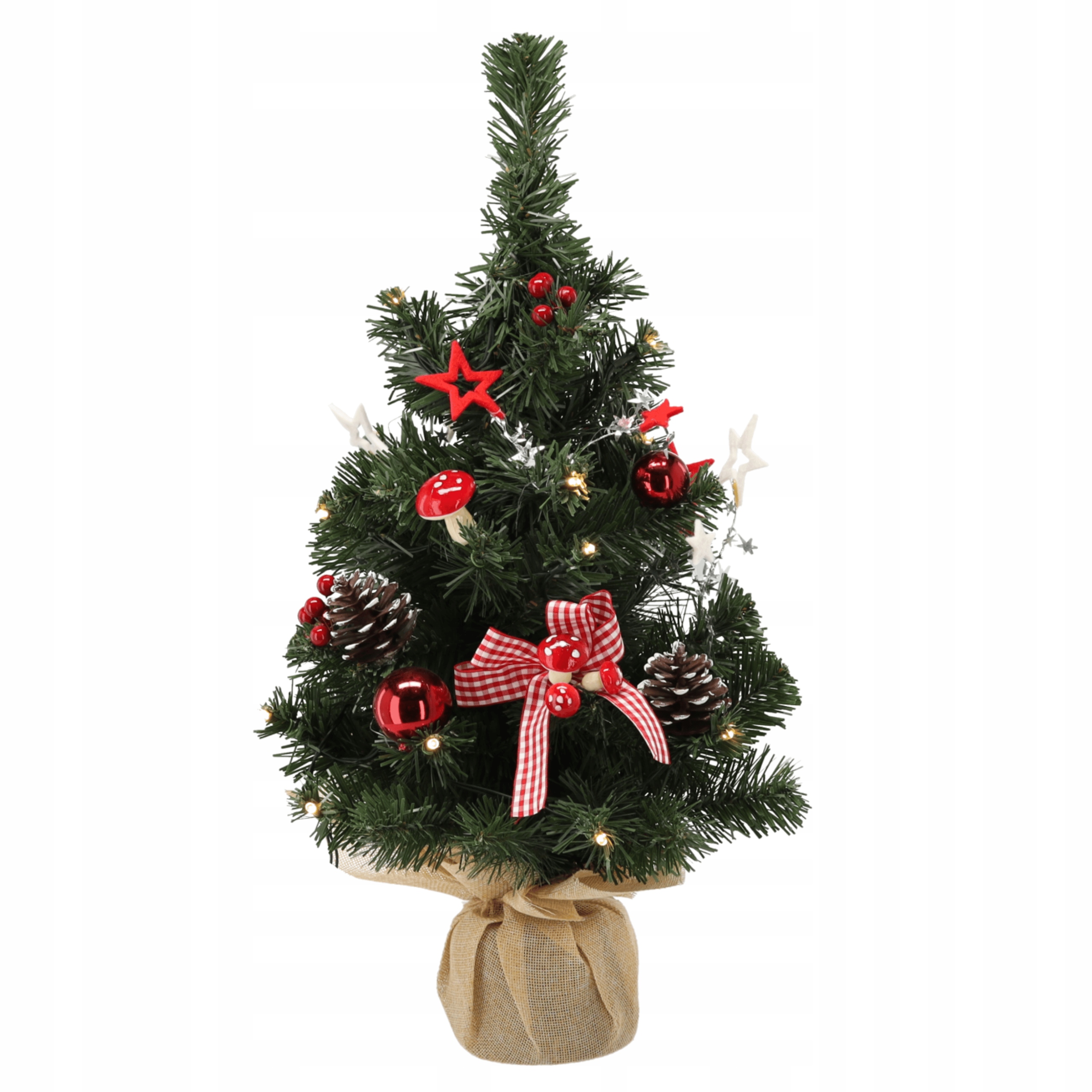 CHOINKA SZTUCZNA 50 CM DEKOROWANA ZE ŚWIATŁAMI LED | MINI DRZEWKO ŚWIĄTECZNE CZERWONE | NA BIURKO, STÓŁ, DO BIURA