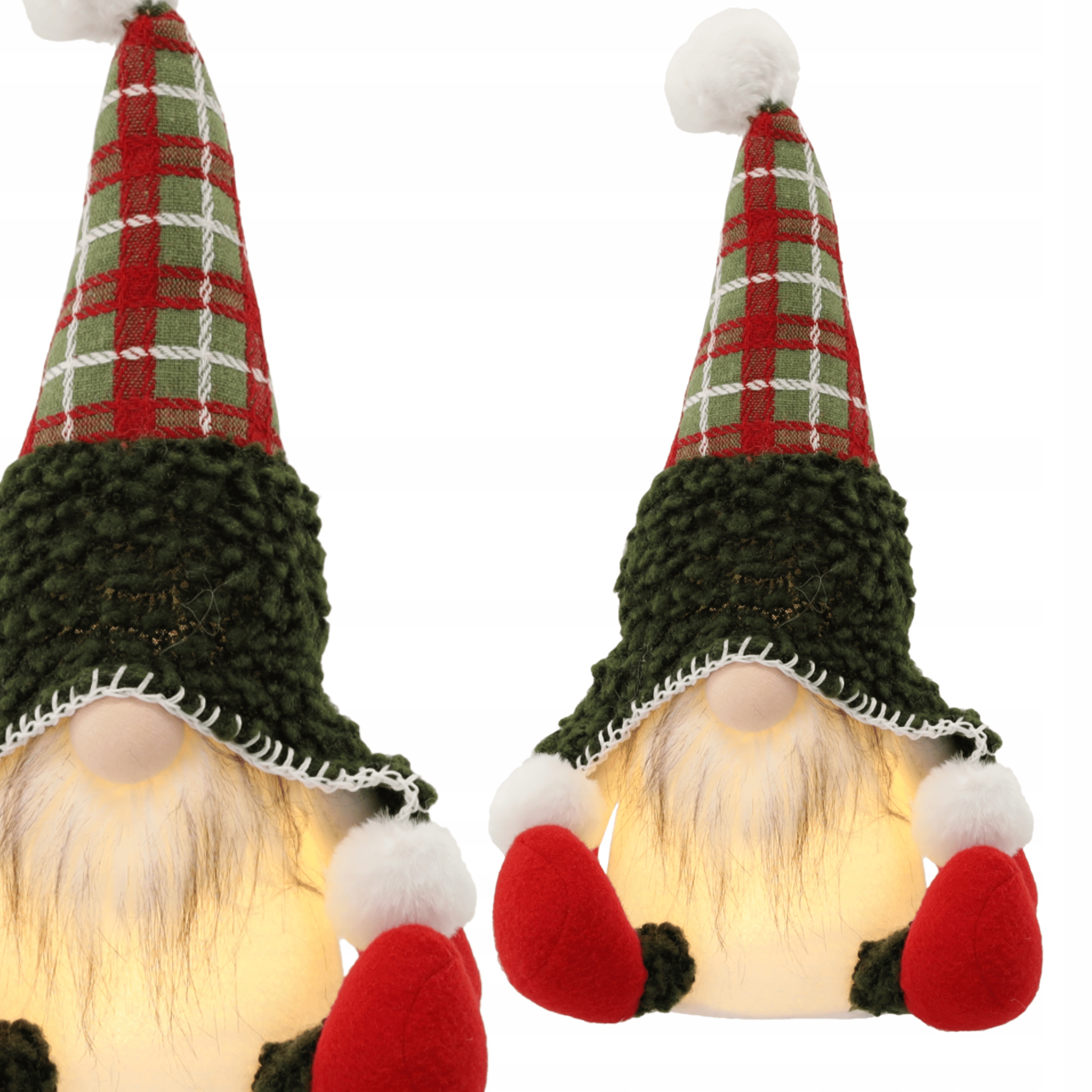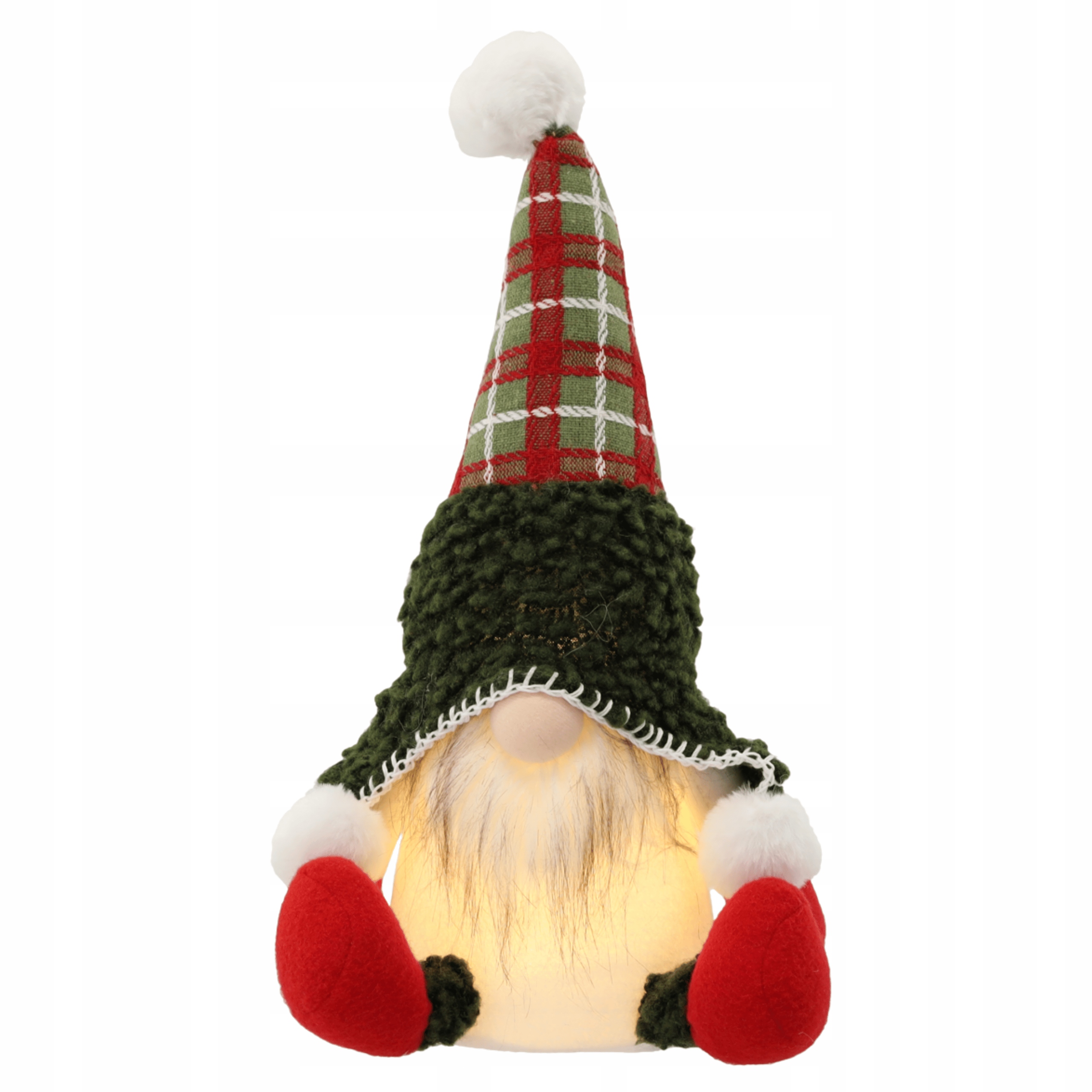 ŚWIECĄCY SKRZAT KRASNAL GNOM MIKOŁAJ Siedzący z brodą 34 cm – Twój nowy świąteczny ulubieniec!