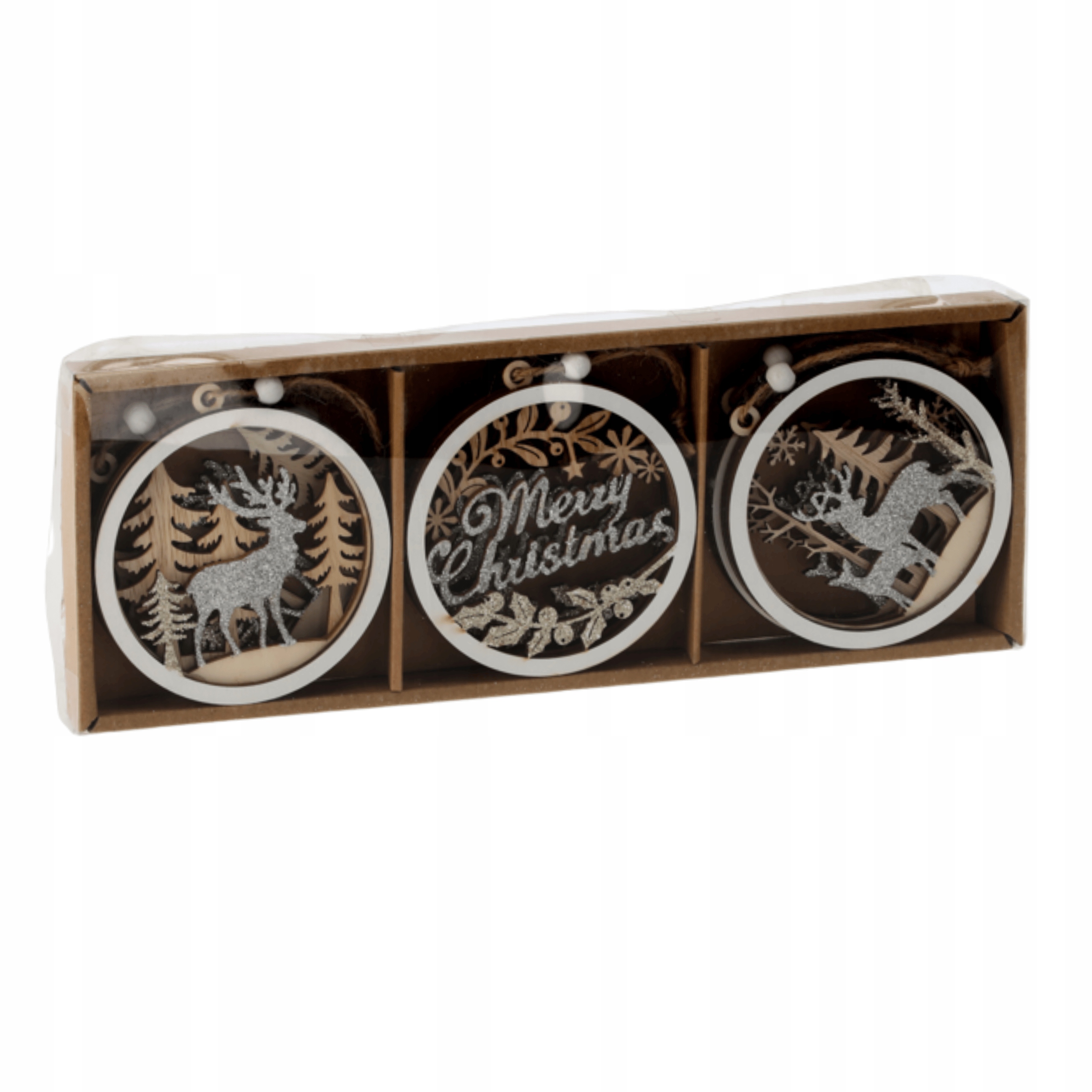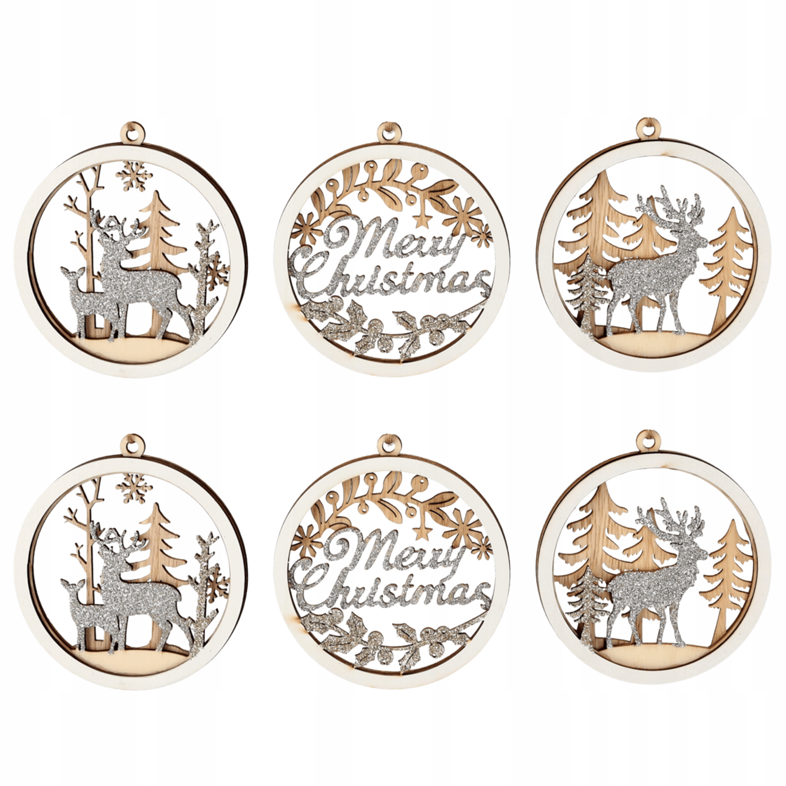 DREWNIANE OZDOBY CHOINKOWE 8 CM – ZAWIESZKI BOŻONARODZENIOWE 6 SZT.