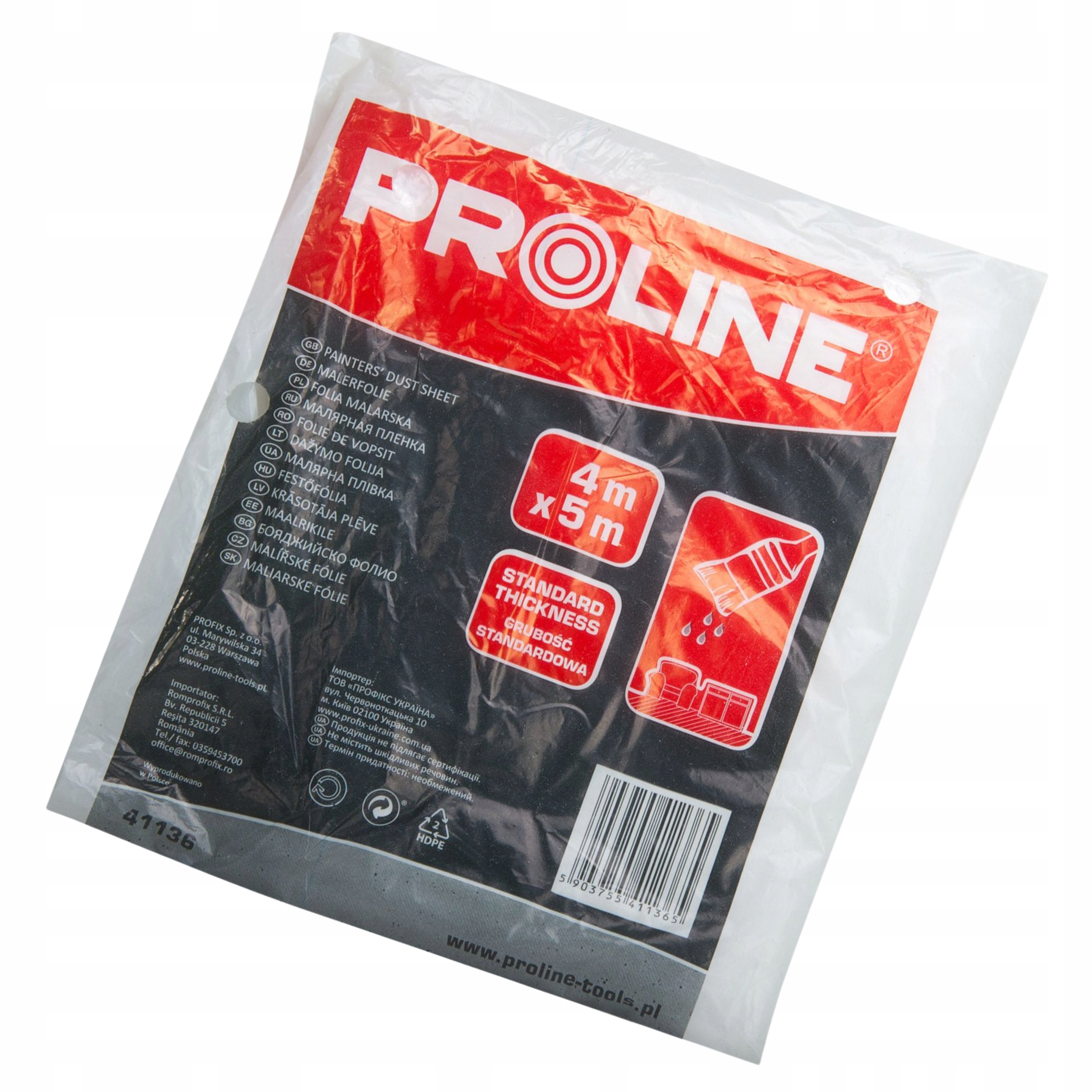 FOLIA MALARSKA OCHRONNA 4x5m mocna gruba PROLINE LDPE 20 mikr