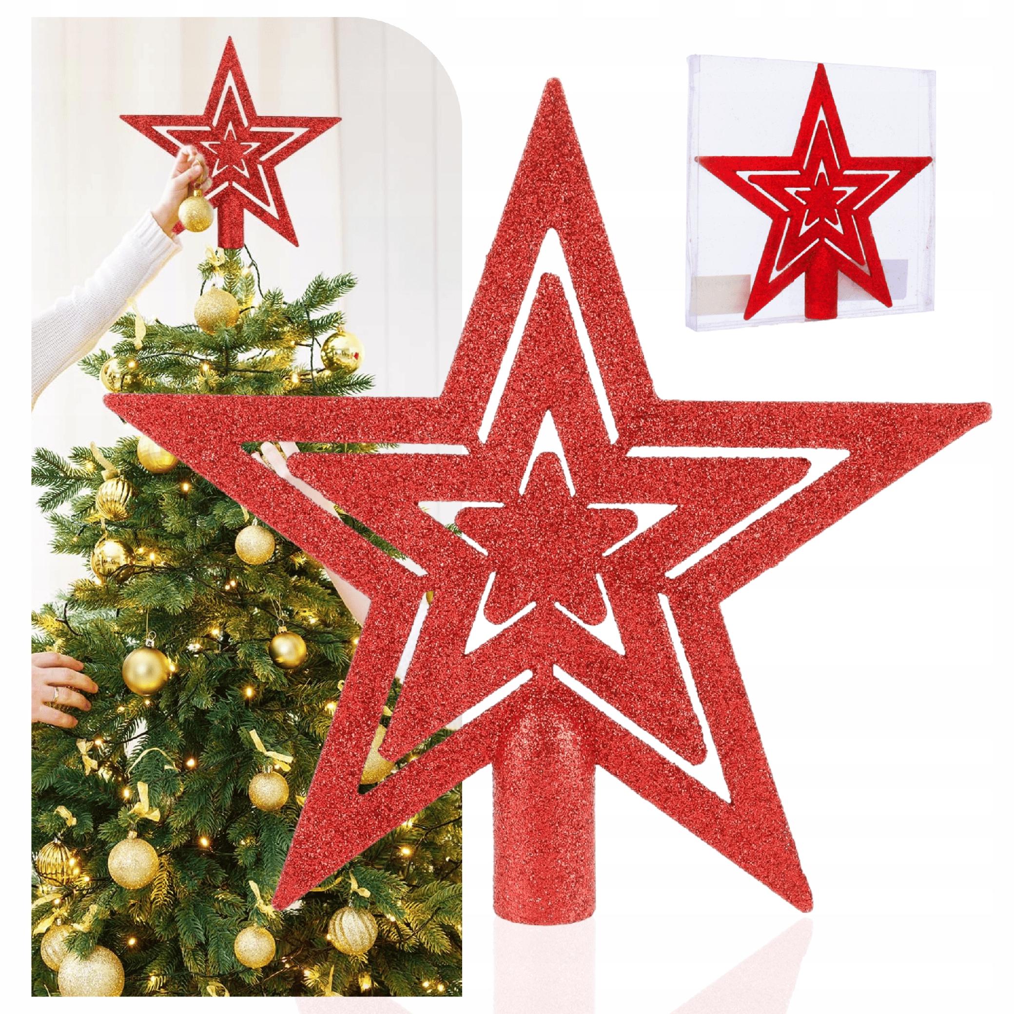GWIAZDA CZUBEK NA CHOINKĘ 20 CM CZERWONA | BŁYSZCZĄCA BROKATOWA | SZPIC NIETŁUKĄCY PLASTIKOWY ✨