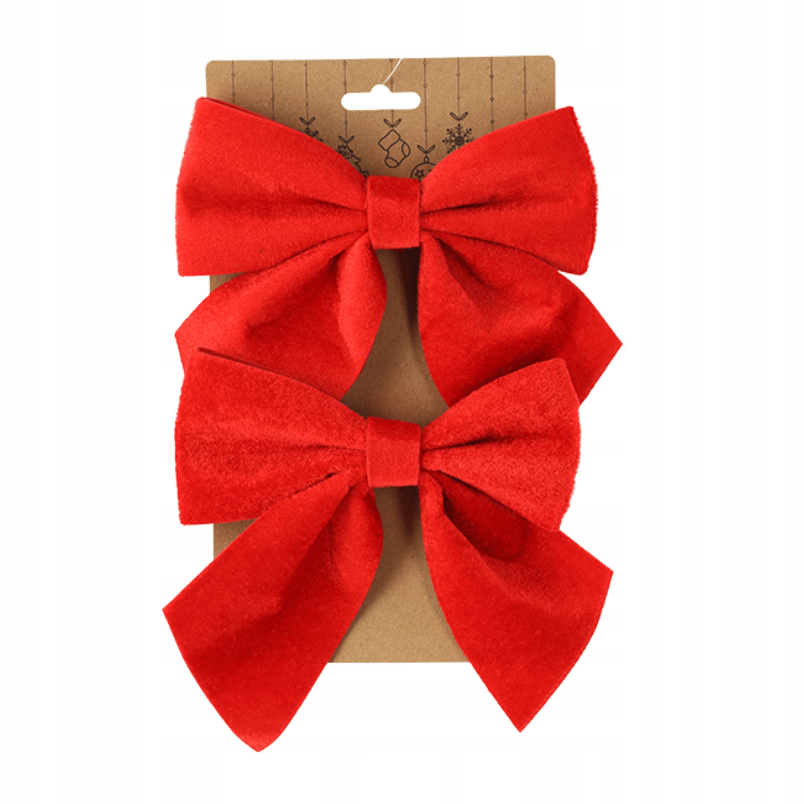 Dodaj świątecznego uroku swoim dekoracjom dzięki eleganckim kokardkom welurowym w głębokim, czerwonym kolorze! Ten zestaw 2 sztuk to idealny wybór do ozdabiania choinki, prezentów, stroików, girland czy świątecznego stołu. Ich luksusowy wygląd i miękka, aksamitna faktura wprowadzą do wnętrza wyjątkowy klimat Bożego Narodzenia.