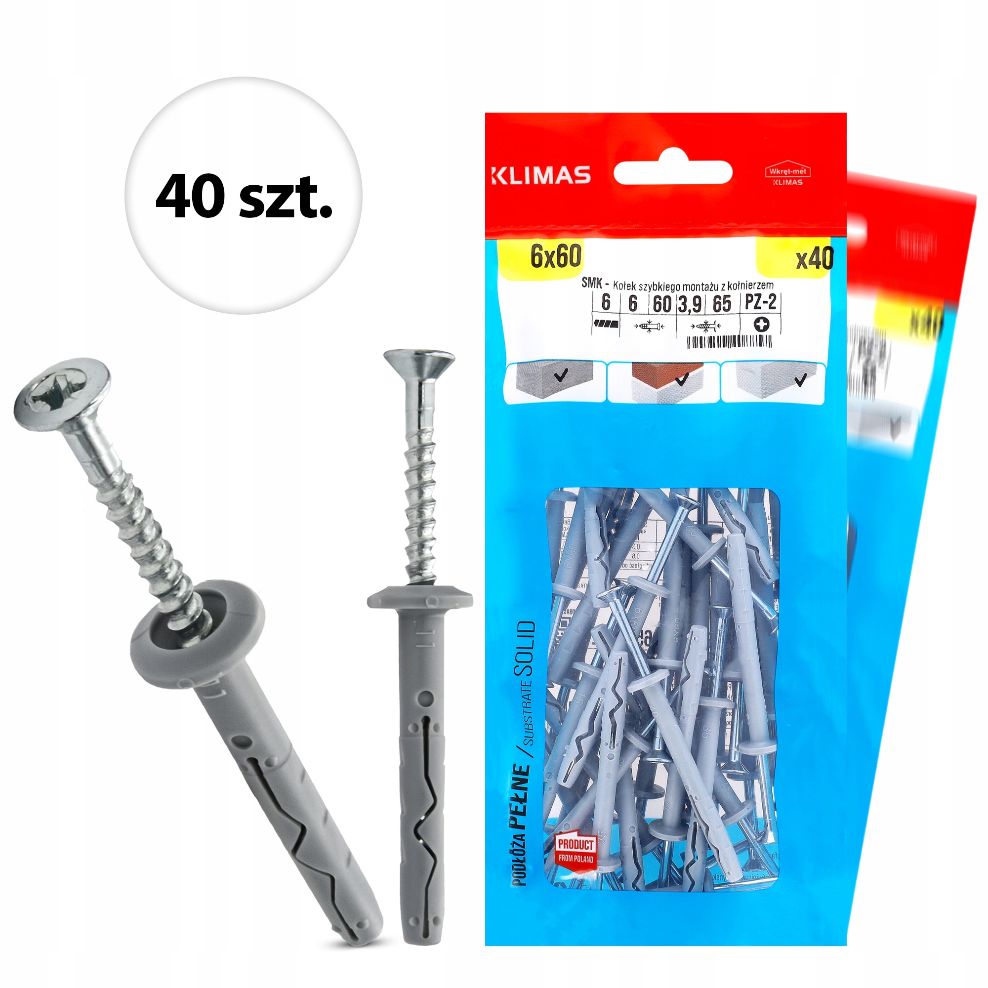 ✅ Do betonu, cegły - uniwersalne kołki szybkiego montażu.