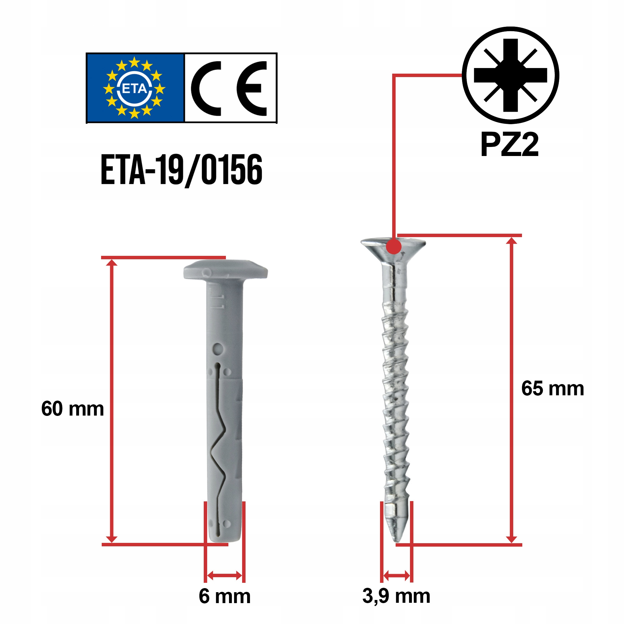 - Średnica wkręta: 3,9 mm