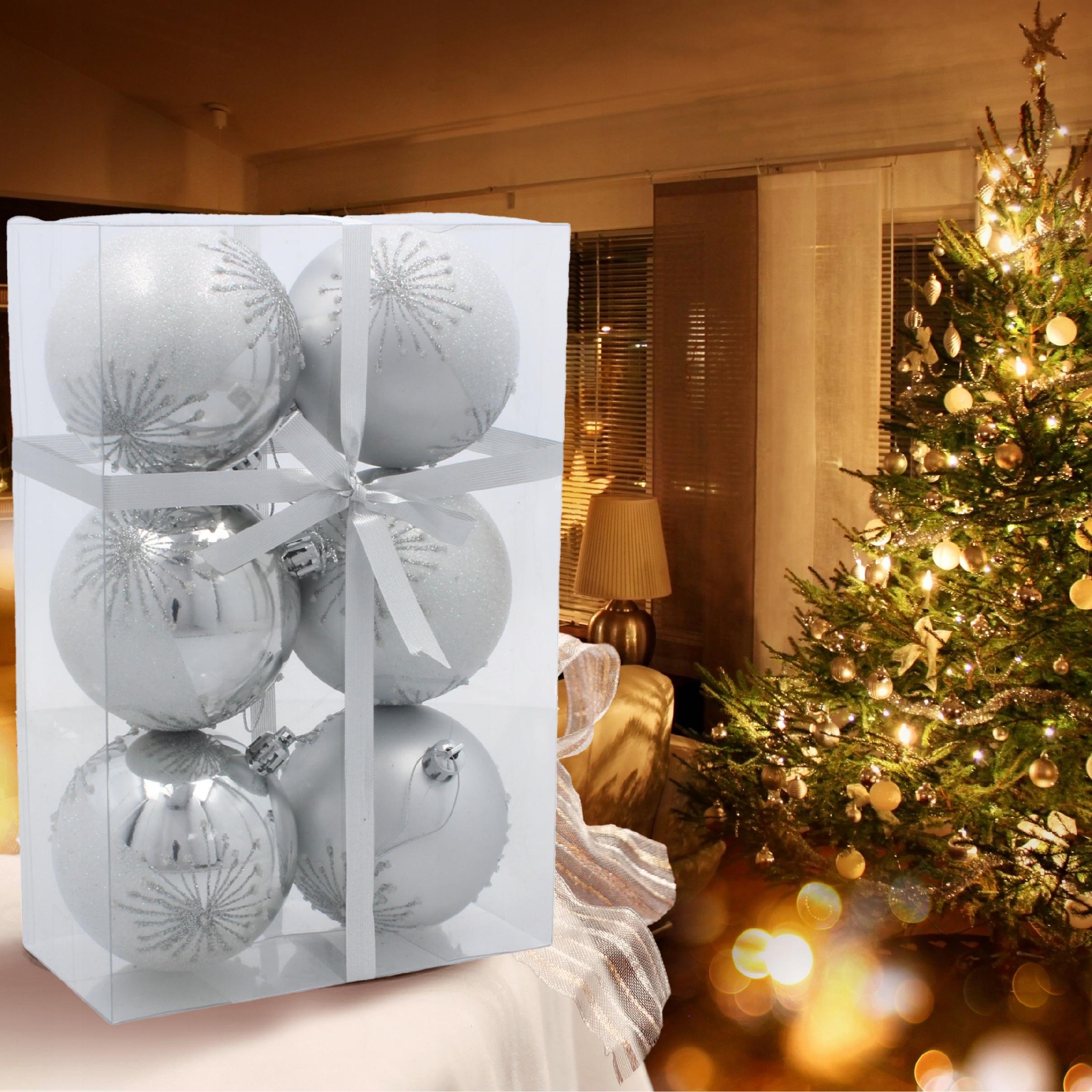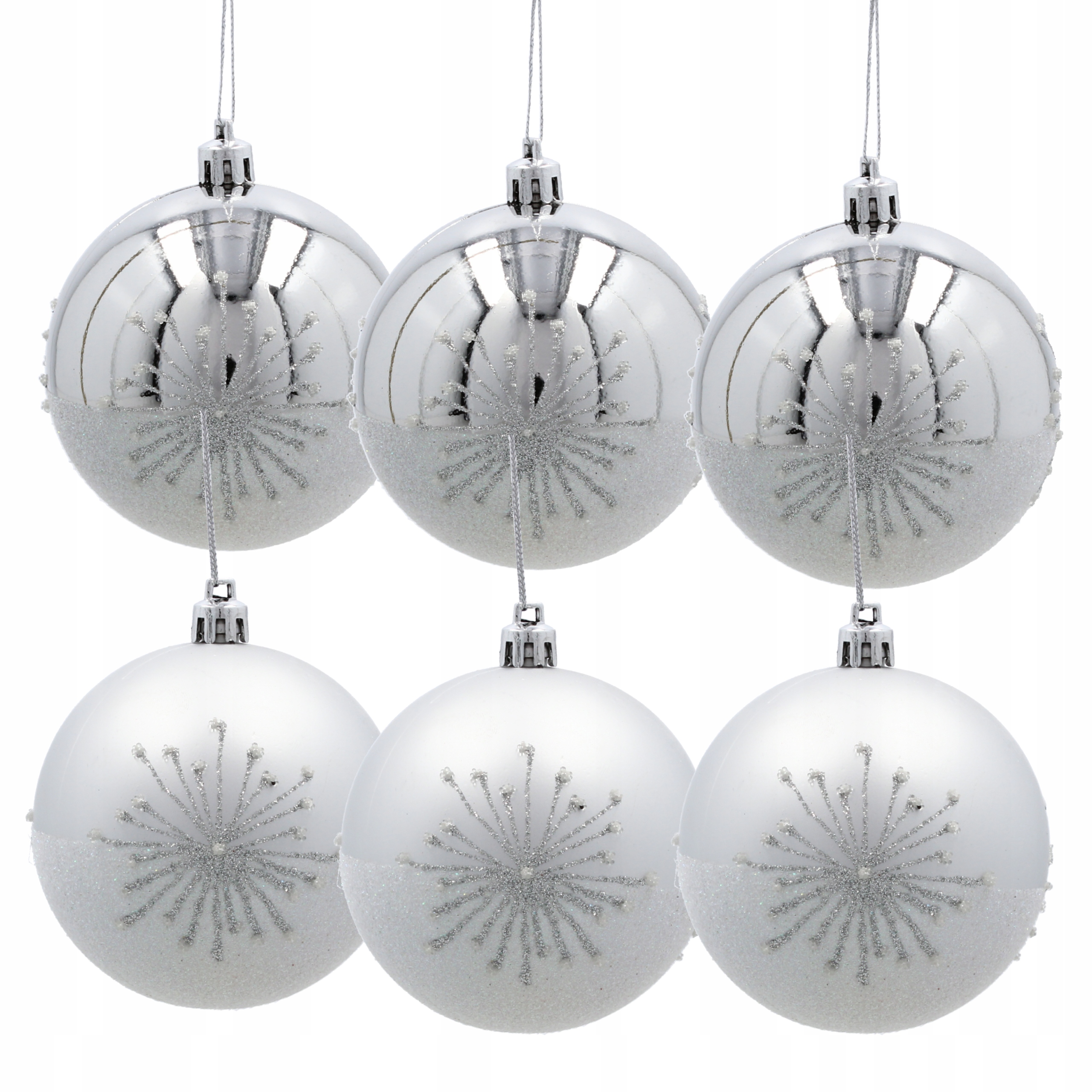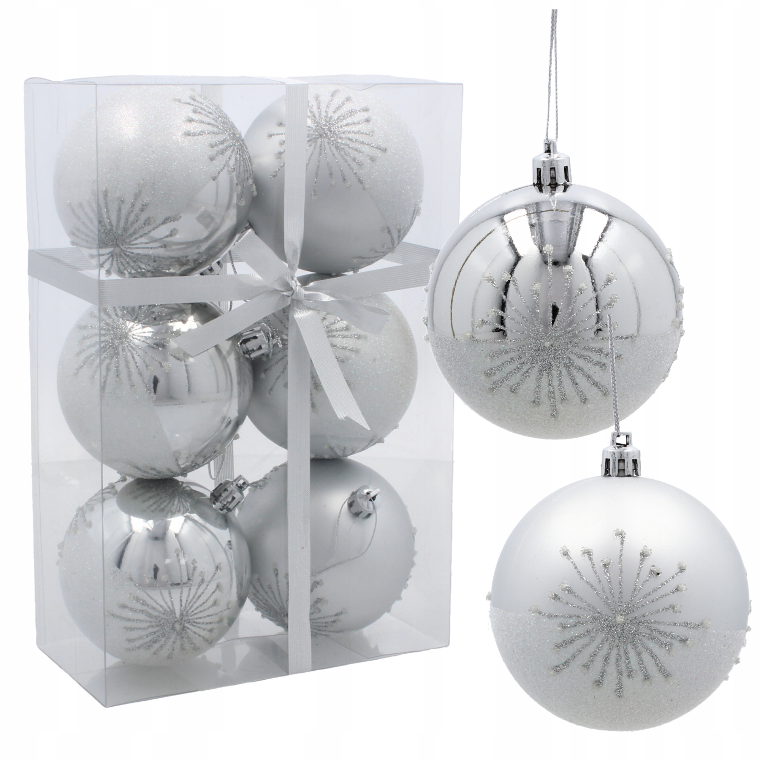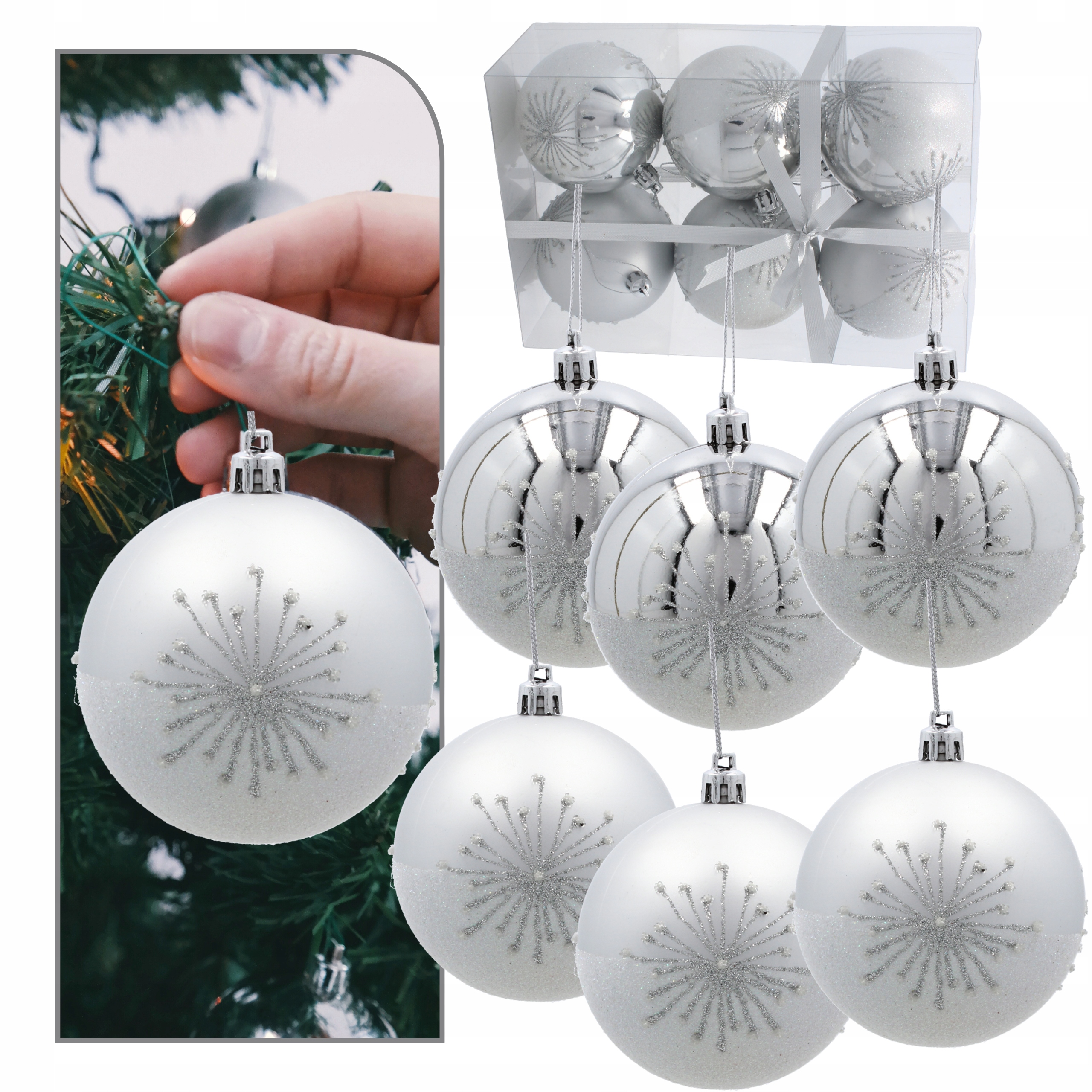 KOMPLET ZESTAW 6 OZDÓB BOMBEK CHOINKOWYCH 8cm srebrne W1 NIETŁUKĄCE