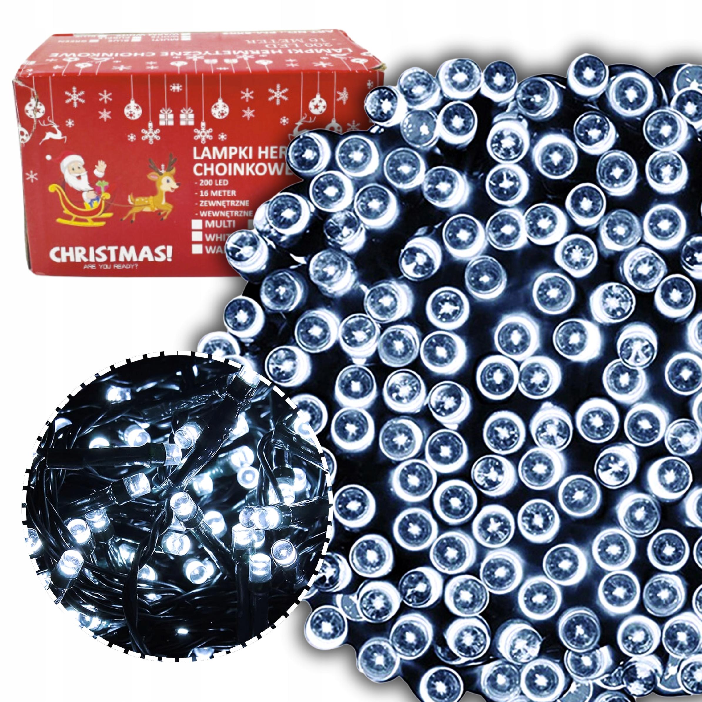 LAMPKI CHOINKOWE ŚWIATEŁKA 200 LED WEWNĘTRZNE ZEWNĘTRZNE zimny biały MOCNE