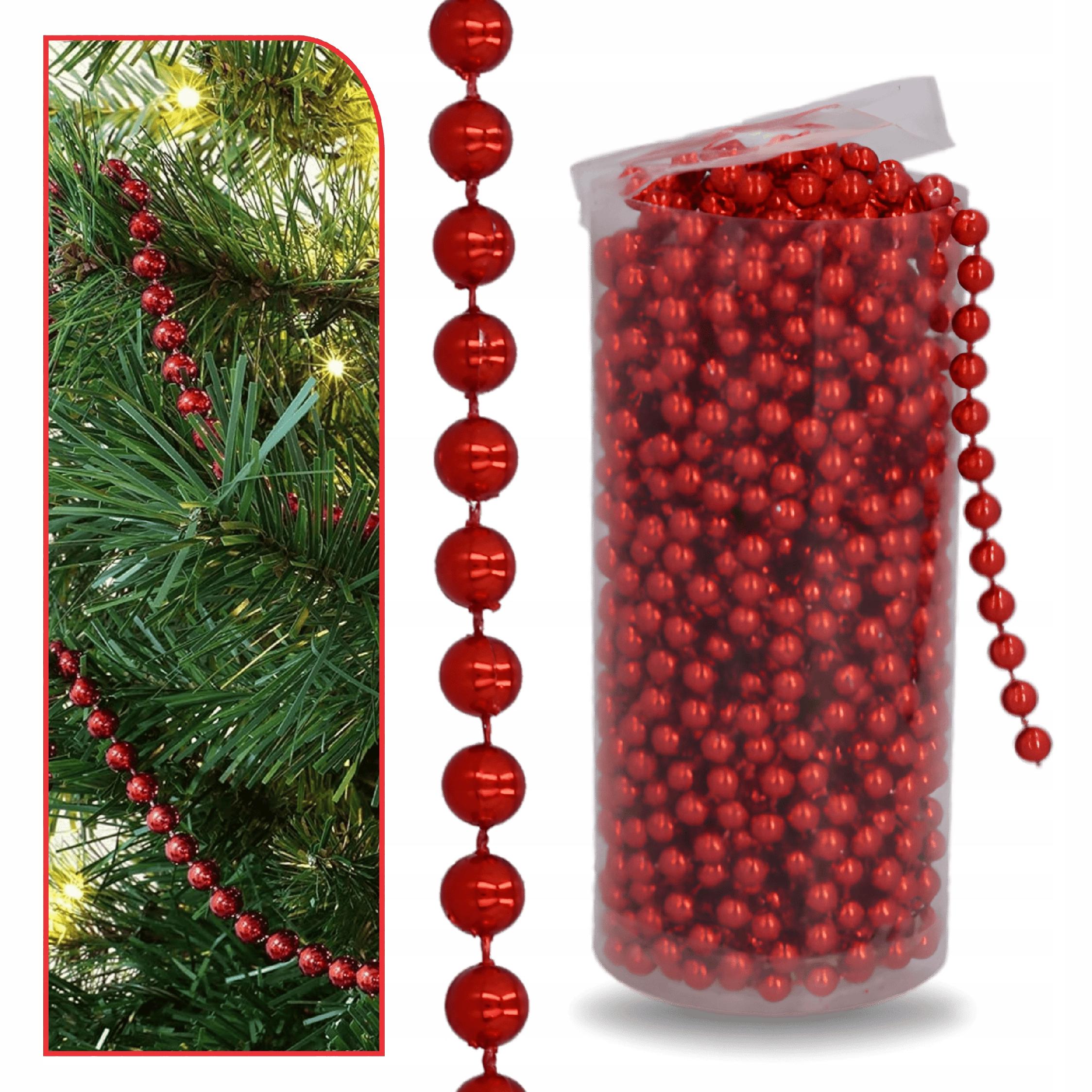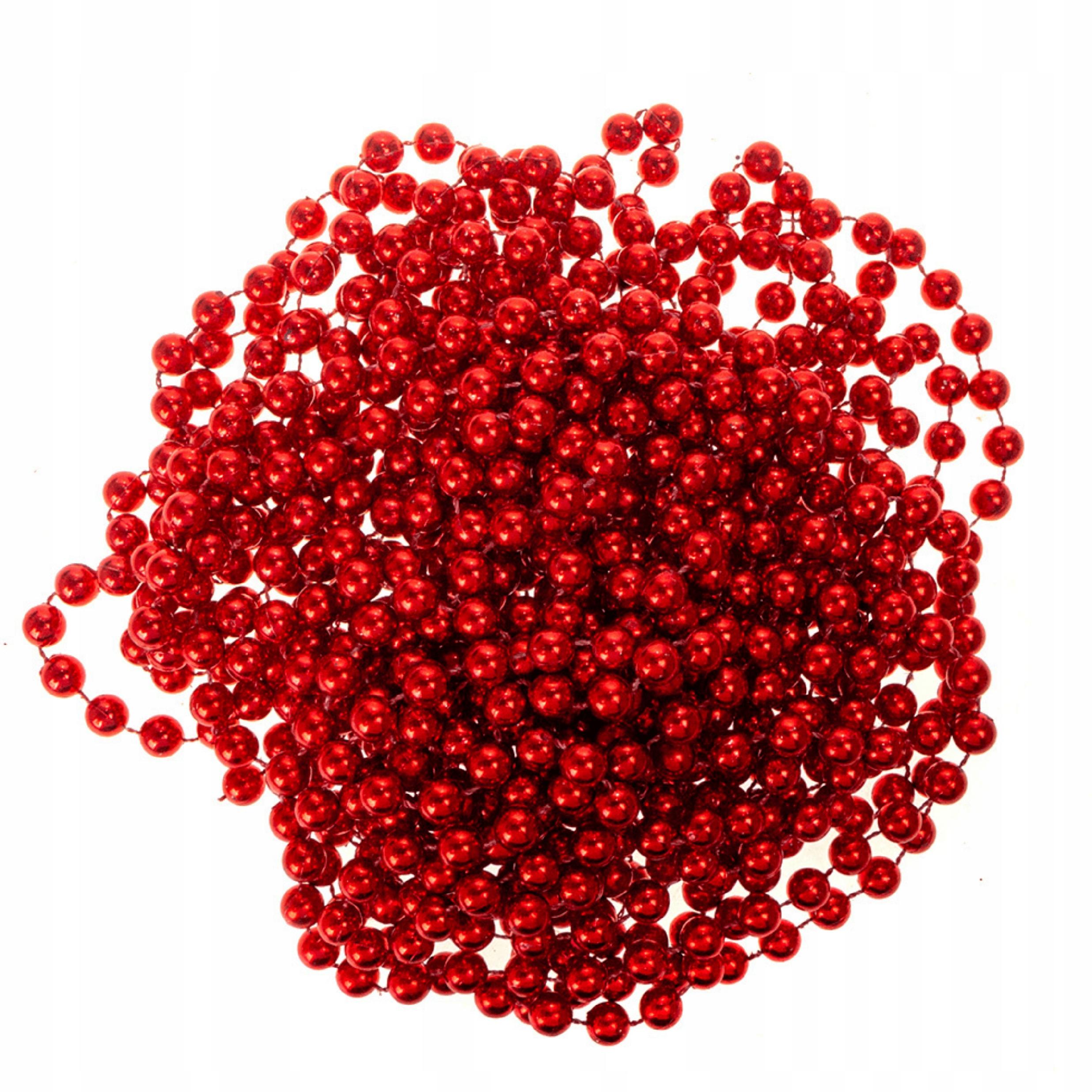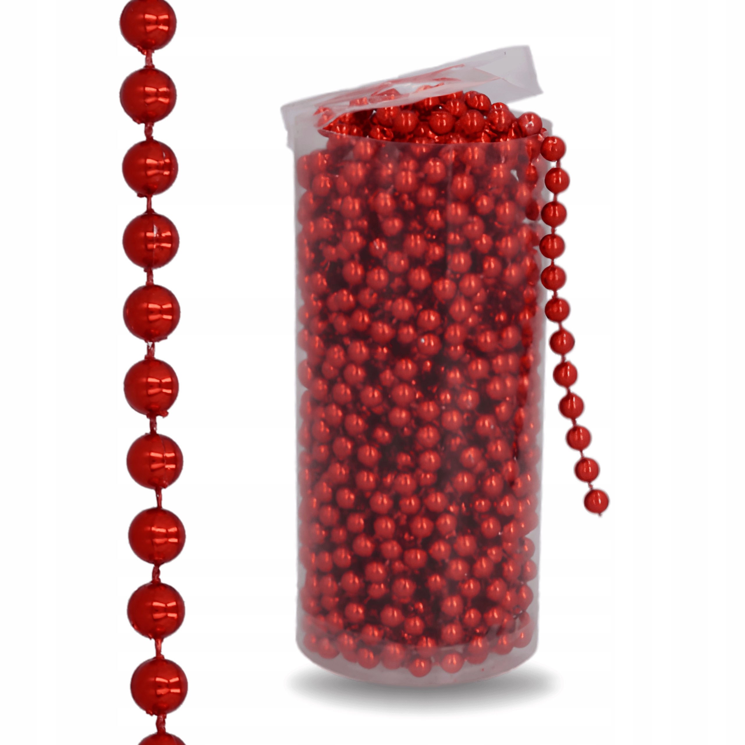ŁAŃCUCH GIRLANDA KORALIKI KORALE 6mm NA CHOINKĘ STROIK 10m czerwony W TUBIE
