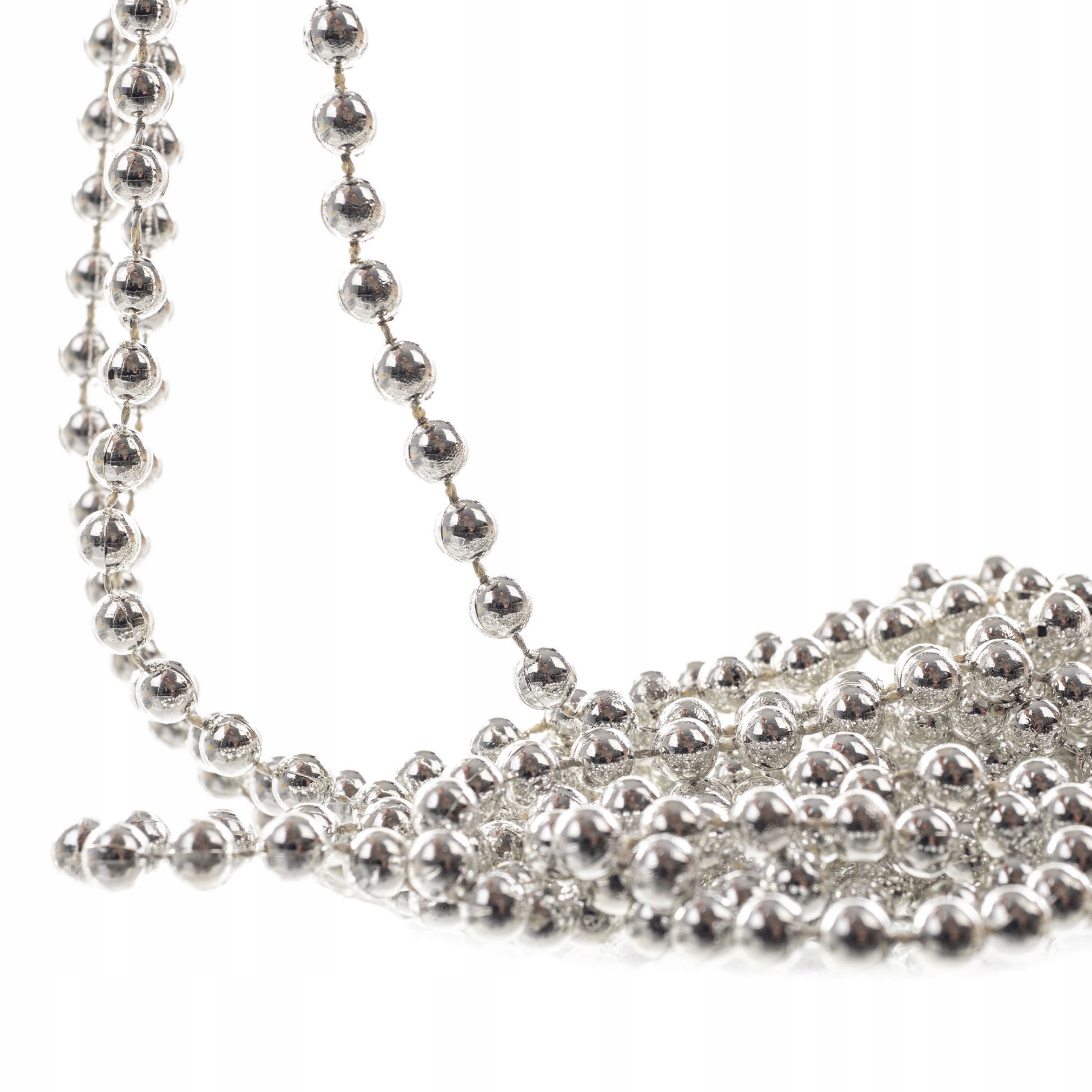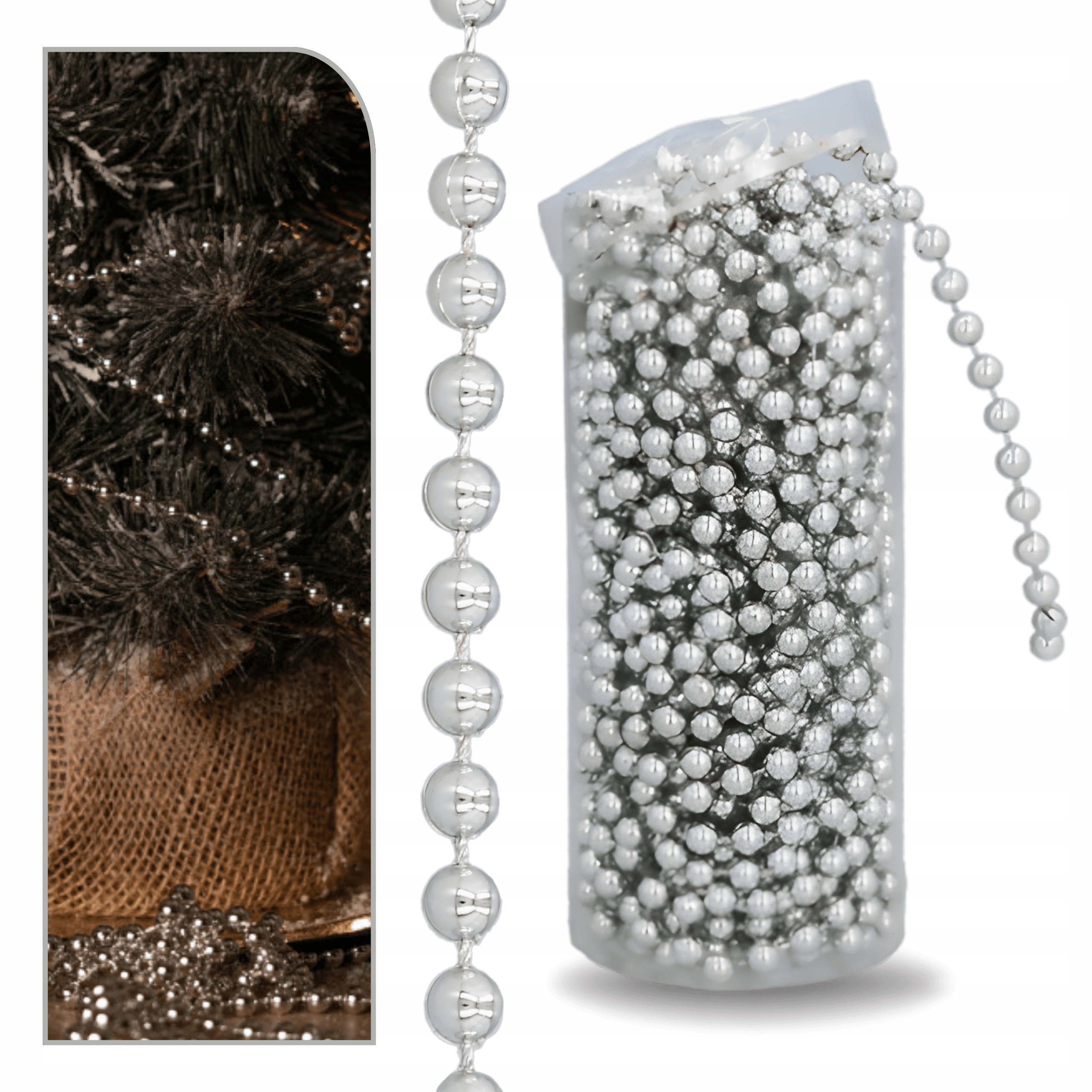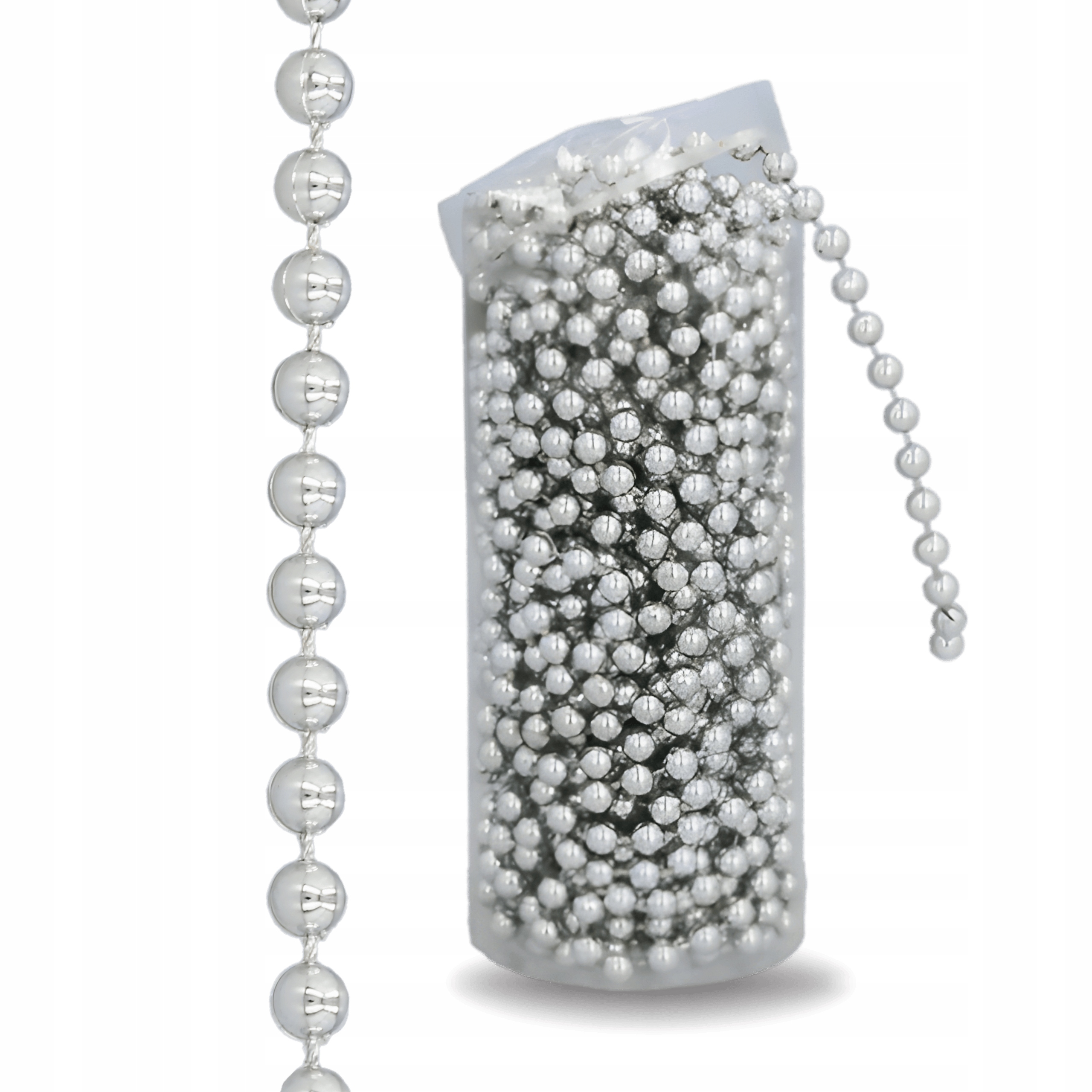 ŁAŃCUCH GIRLANDA KORALIKI KORALE 6mm NA CHOINKĘ STROIK 10m srebrny W TUBIE