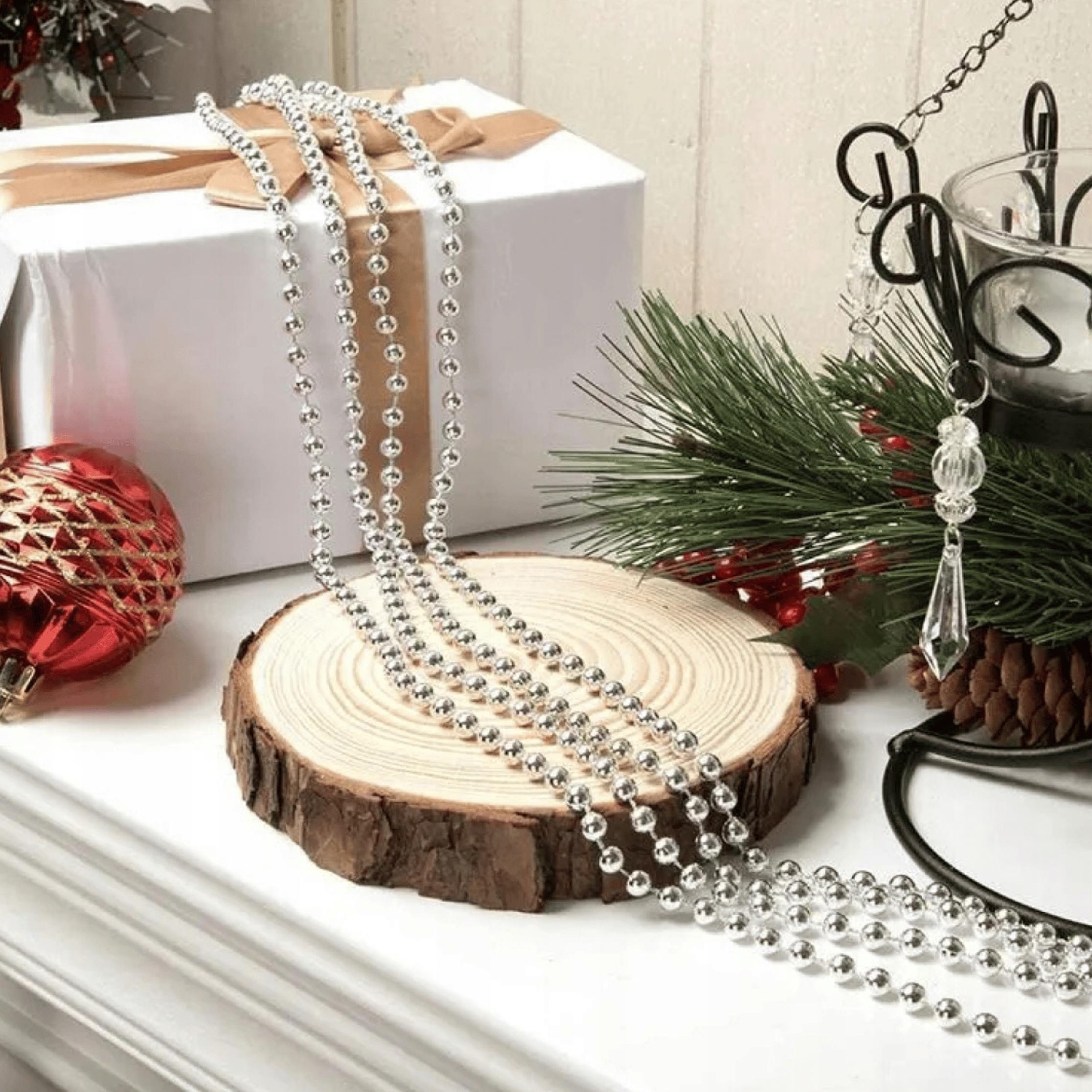 ŁAŃCUCH GIRLANDA KORALIKI SREBRNE 10 M | OZDOBY ŚWIĄTECZNE NA CHOINKĘ, KOMINEK I STROIK | W TUBIE
