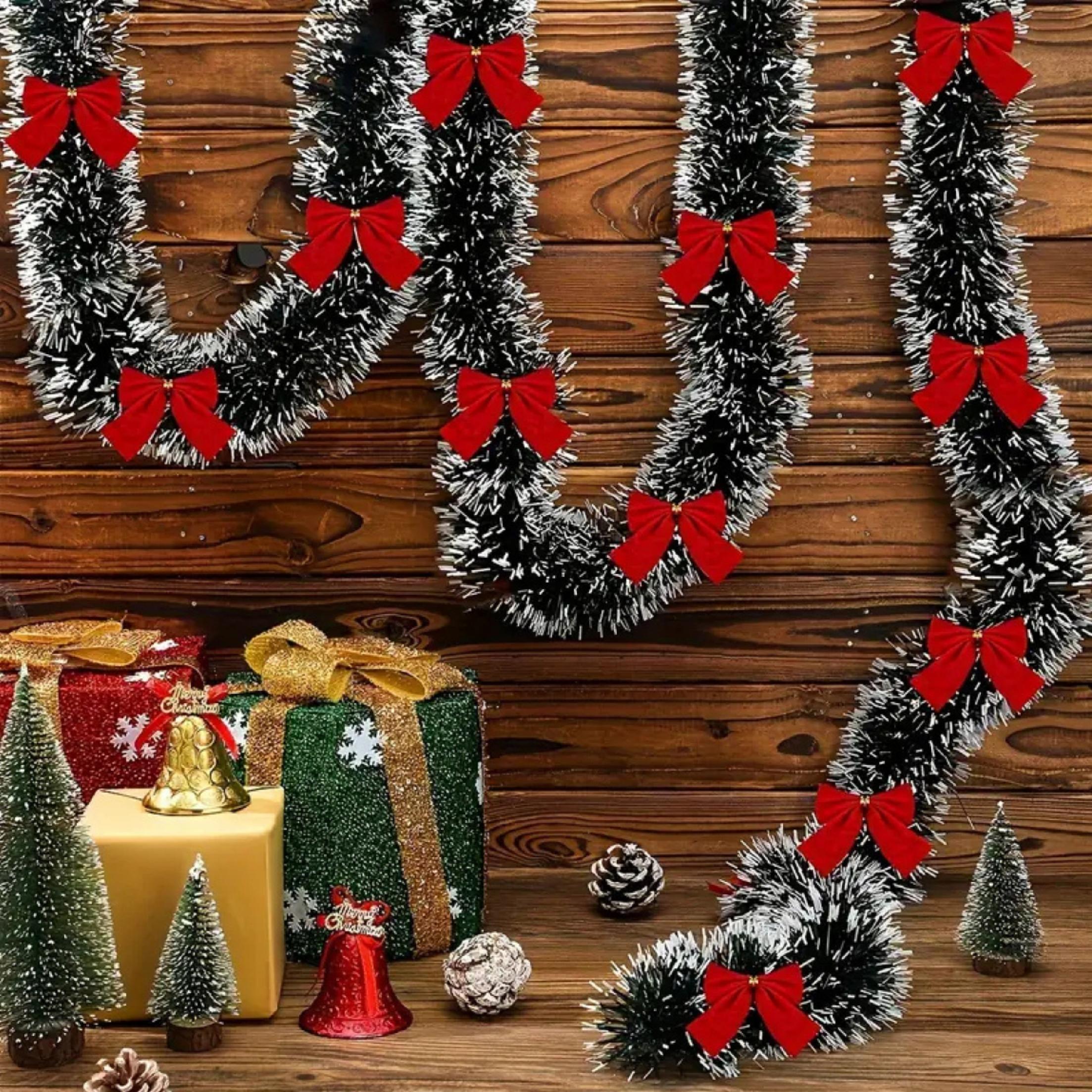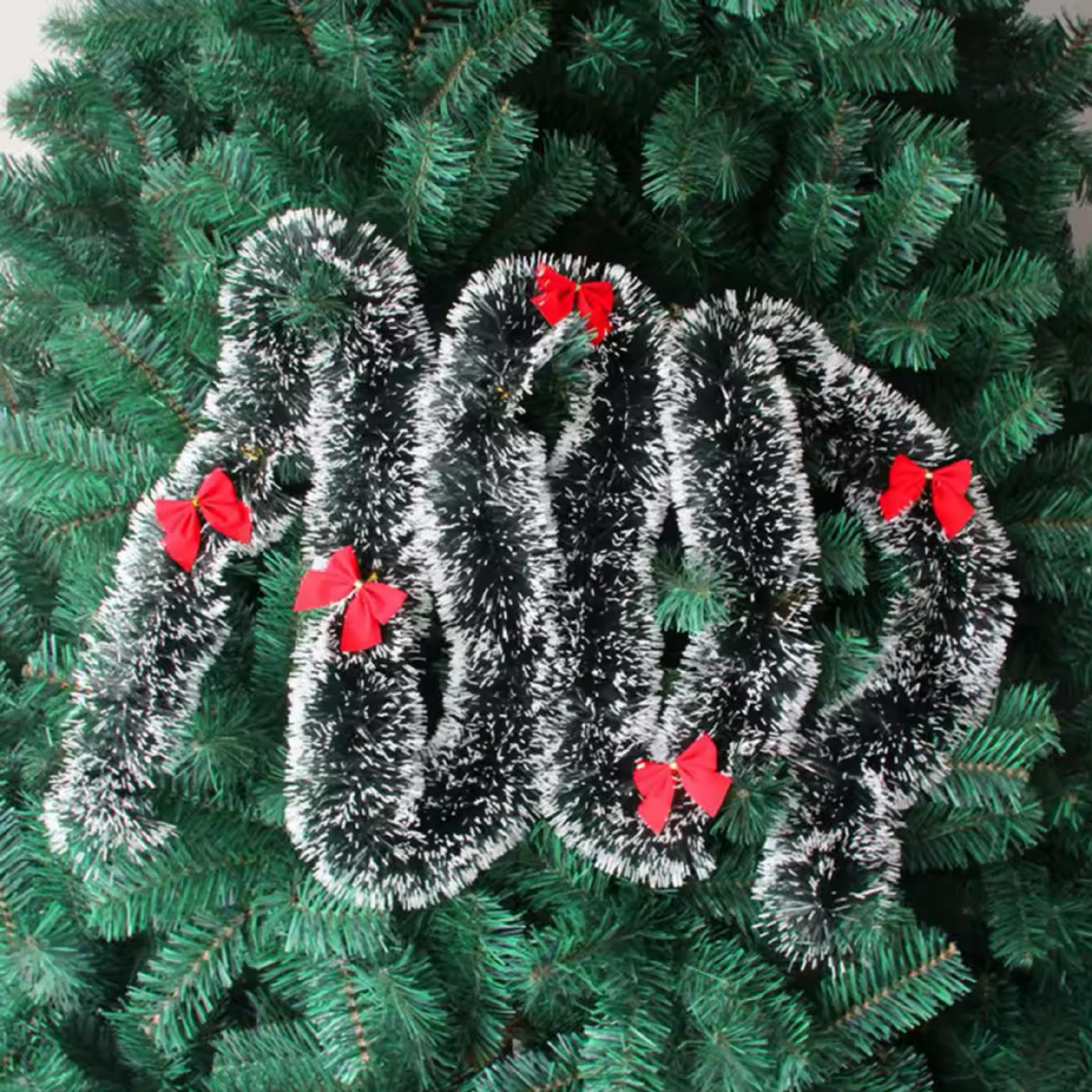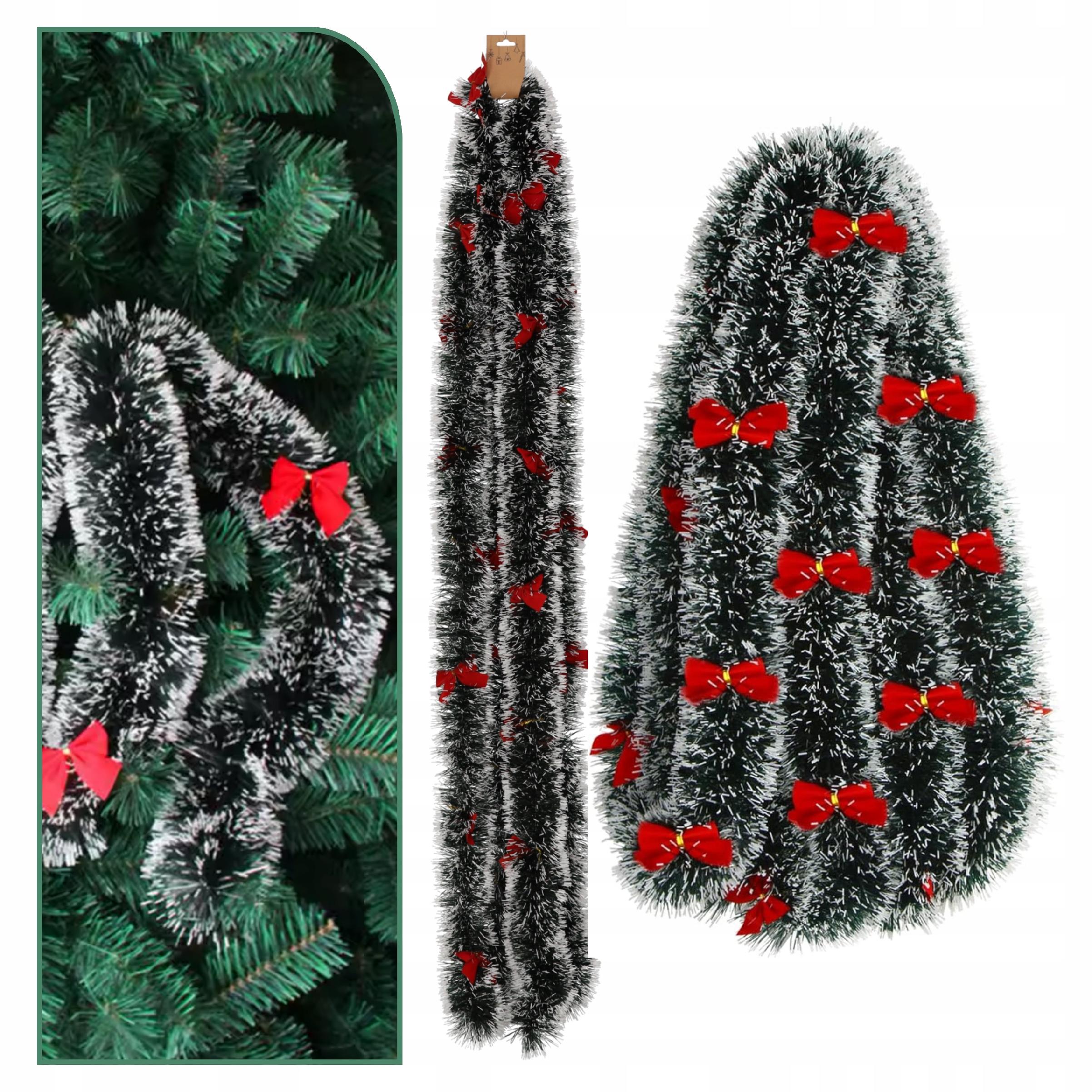 ŁAŃCUCH GIRLANDA SZTUCZNA STROIK ZDOBIONY CHOINKOWY Z KOKARDKAMI 6m GĘSTY