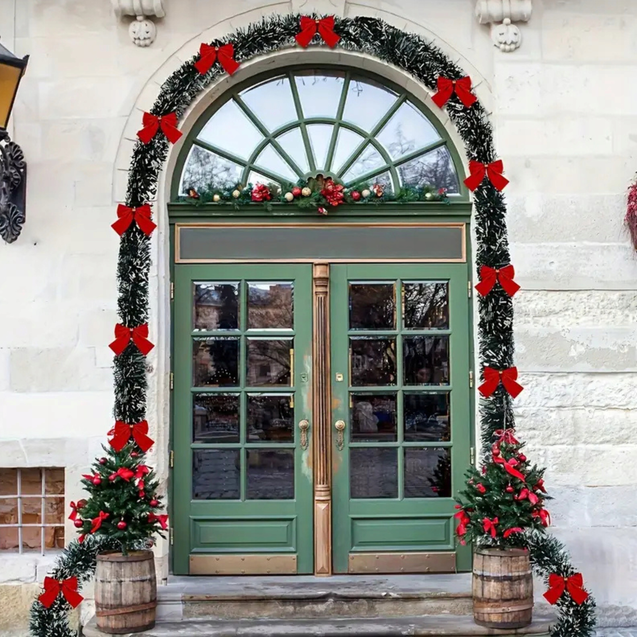 GIRLANDA ŚWIĄTECZNA 6 m ZIELONA Z KOKARDAMI – GĘSTA I ELEGANCKA