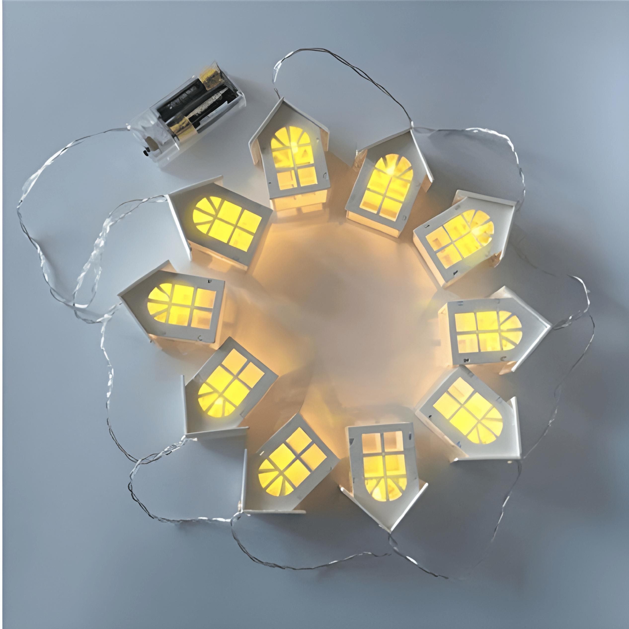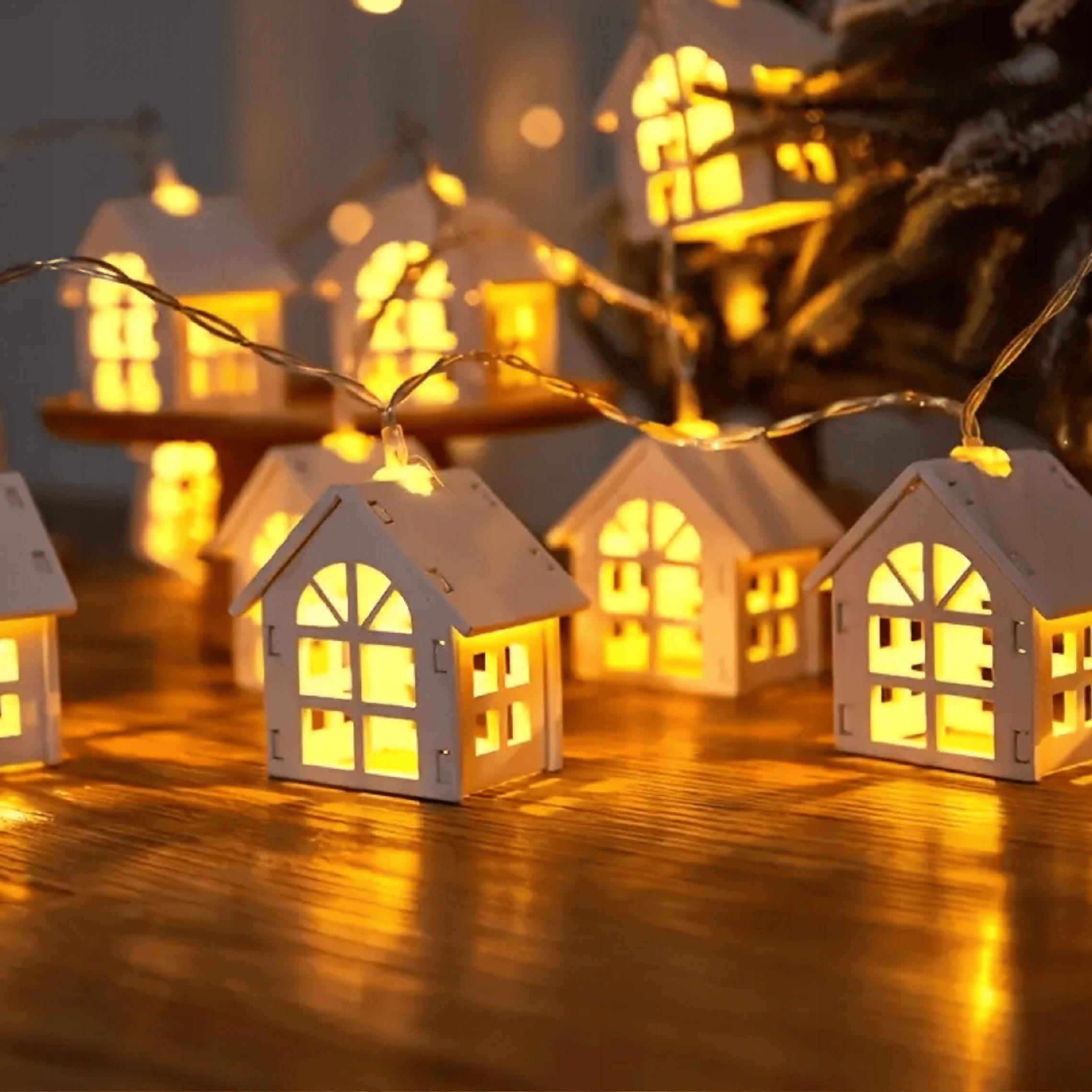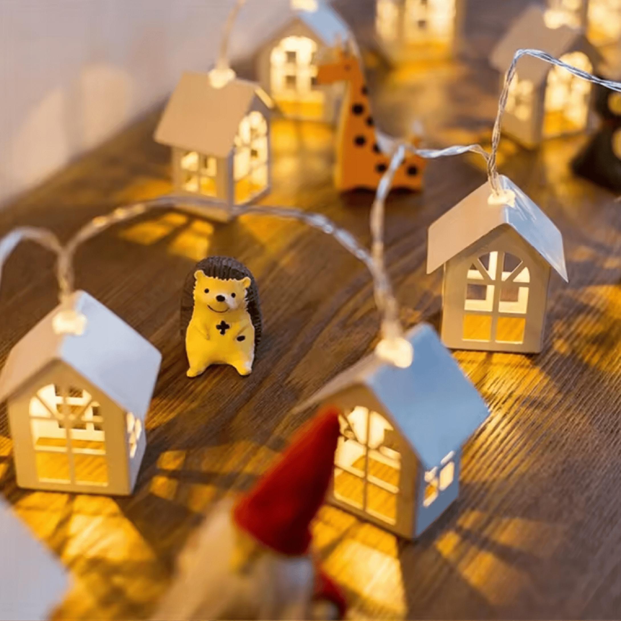 Wprowadź do swojego wnętrza ciepło i magię świąt dzięki wyjątkowemu łańcuchowi świetlnemu LED z metalowymi domkami!