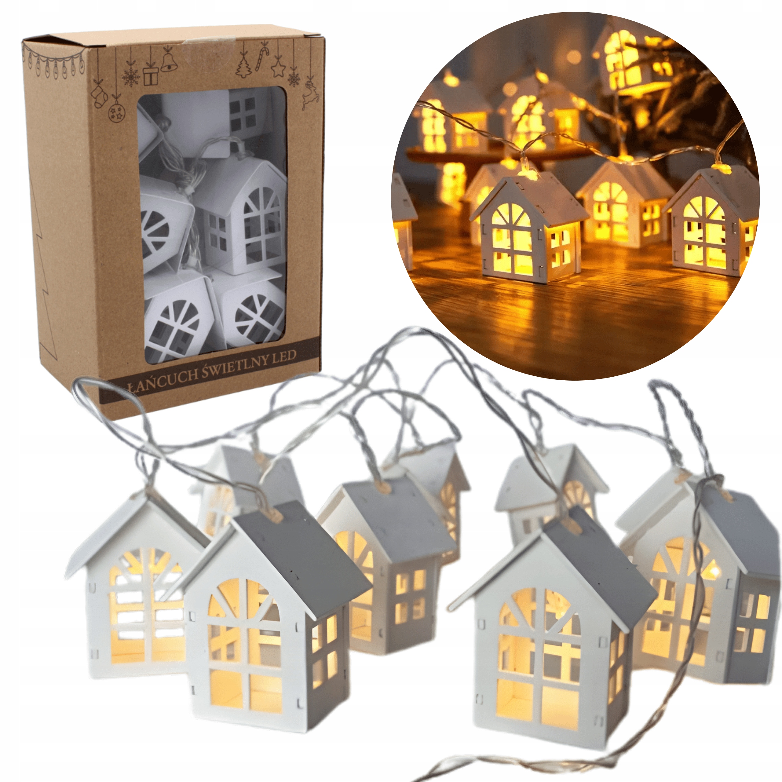 ✨ ŁAŃCUCH ŚWIETLNY LED METALOWE DOMKI | 10 LAMP CIEPŁY BIAŁY | NA BATERIE | DEKORACJA ŚWIĄTECZNA, NASTROJOWA �