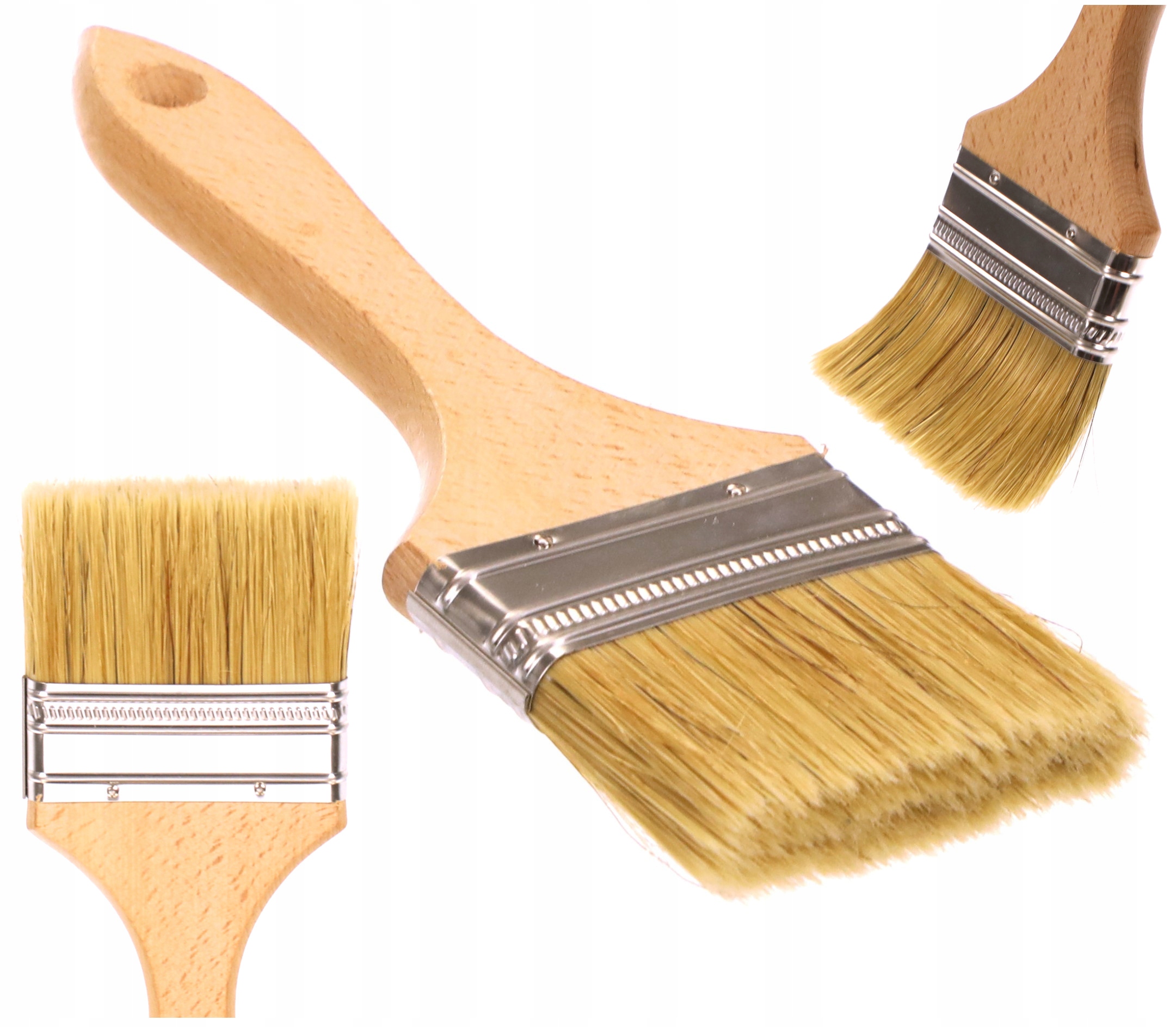 Uniwersalny pędzel angielski 63 mm. Posiada poręczną drewnianą rączkę oraz gęste włosie, które wyprodukowano z naturalnej szczeciny. Pędzel wyprodukowano w Polsce.