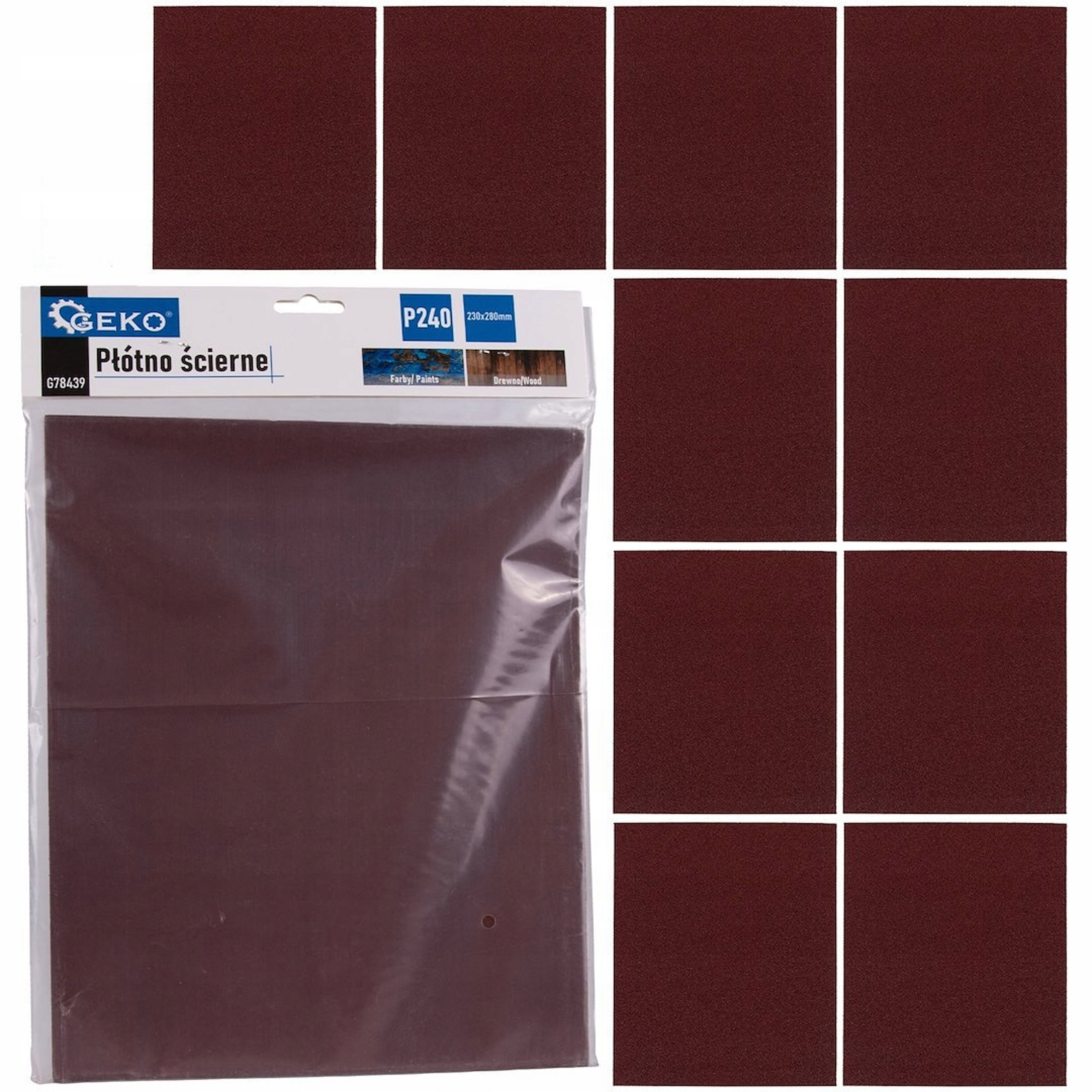 PŁÓTNO ŚCIERNE PAPIER ARKUSZ 230x280mm P240 GEKO 10szt. uniwersalne