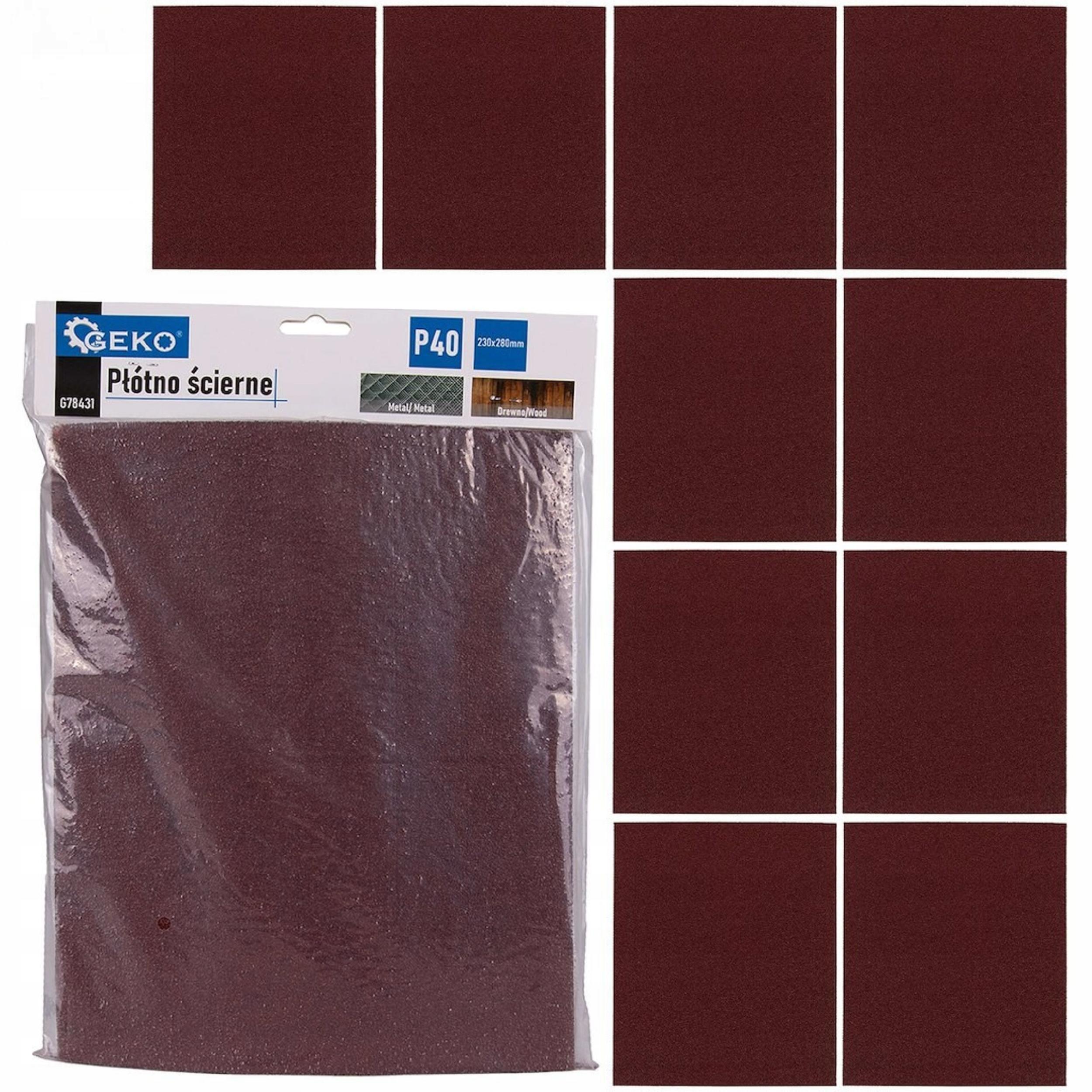 PŁÓTNO ŚCIERNE PAPIER ARKUSZ 230x280mm P40 GEKO 10szt. uniwersalne