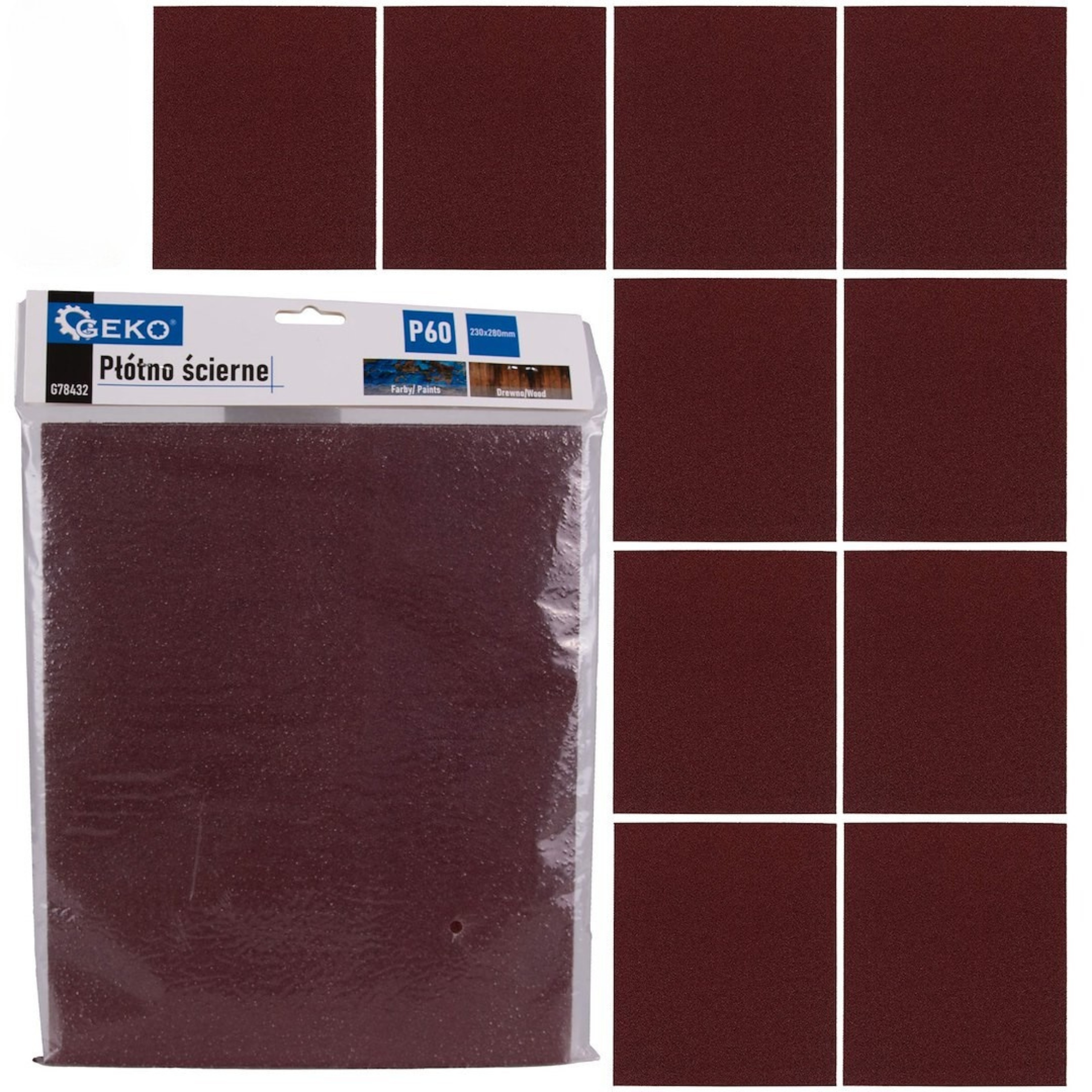 PŁÓTNO ŚCIERNE PAPIER ARKUSZ 230x280mm P60 GEKO 10szt. uniwersalne