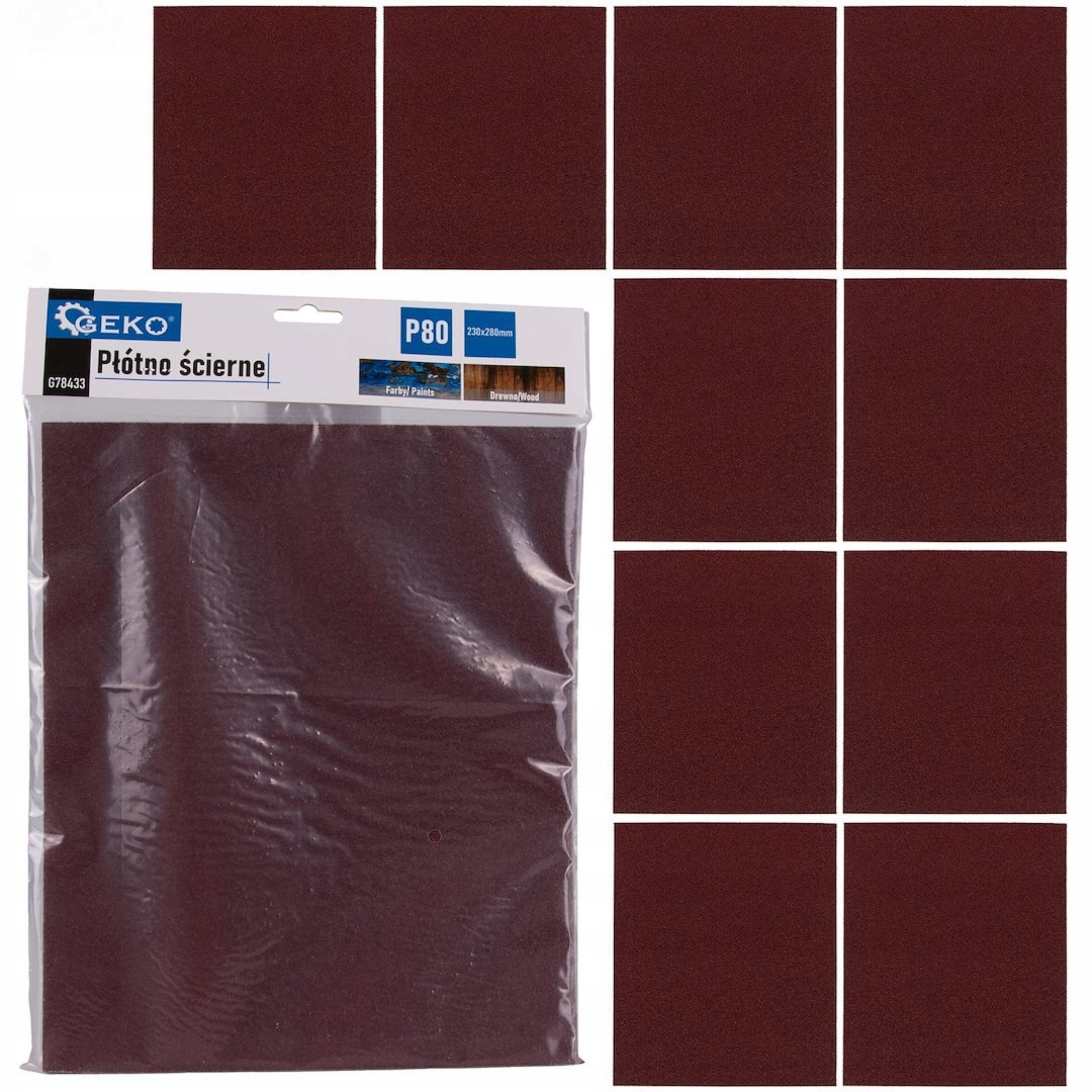 PŁÓTNO ŚCIERNE PAPIER ARKUSZ 230x280mm P80 GEKO 10szt. uniwersalne