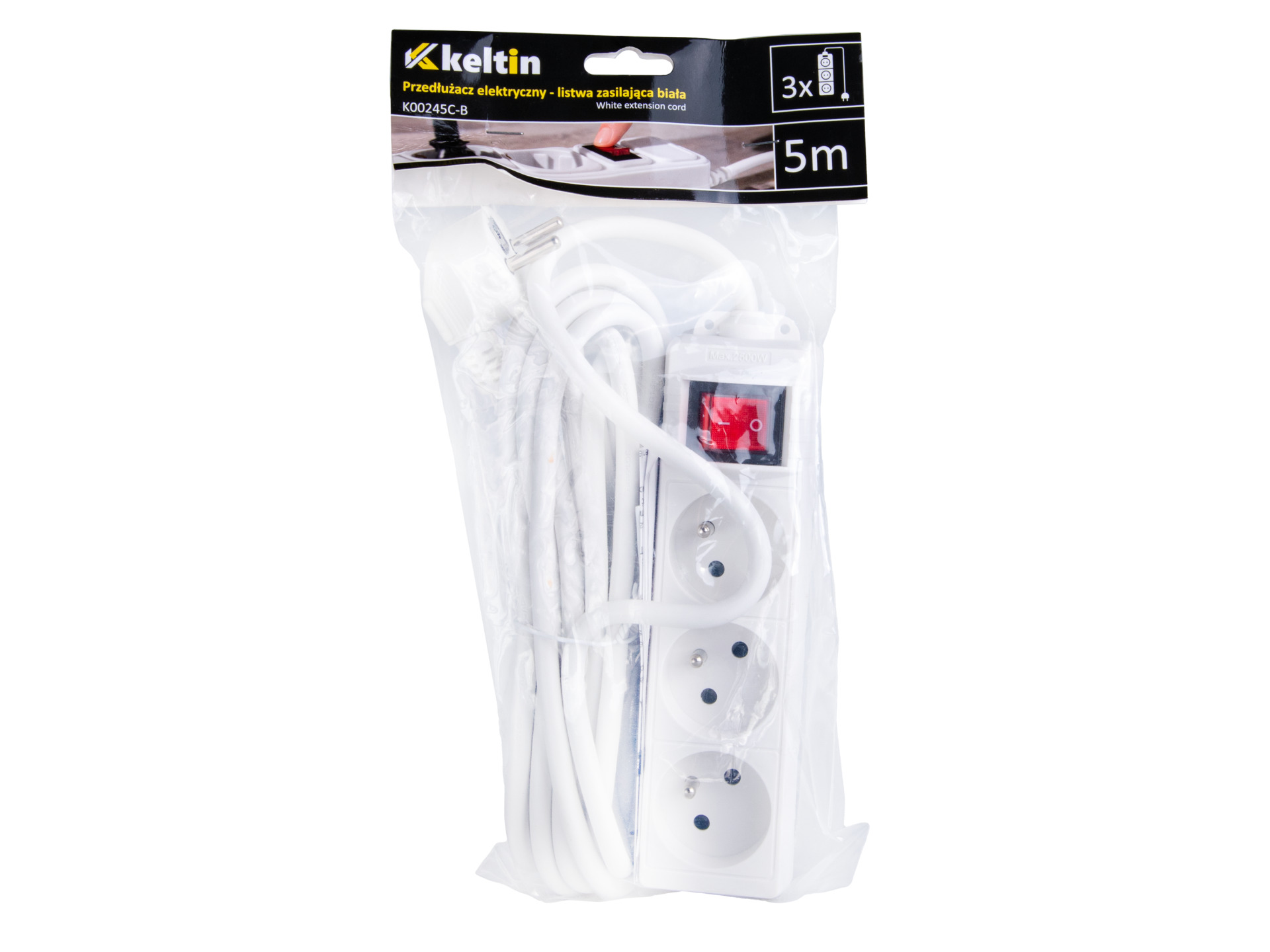 PRZEDŁUŻACZ ELEKTRYCZNY LISTWA ZASILAJĄCA biała 3 gniazda 5m BEZPIECZNIK