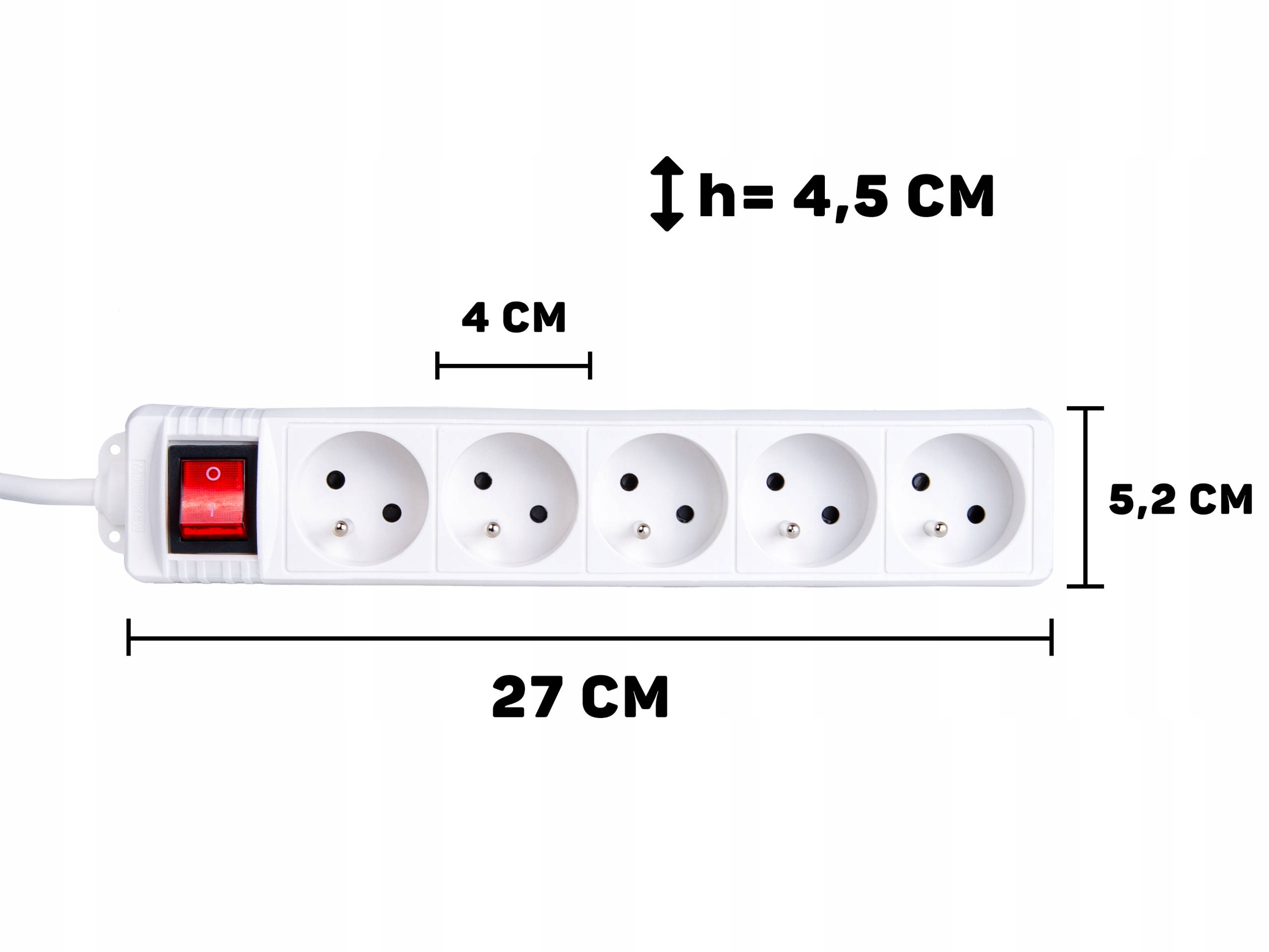 PRZEDŁUŻACZ ELEKTRYCZNY LISTWA ZASILAJĄCA biała 5 gniazdek 3m BEZPIECZNIK