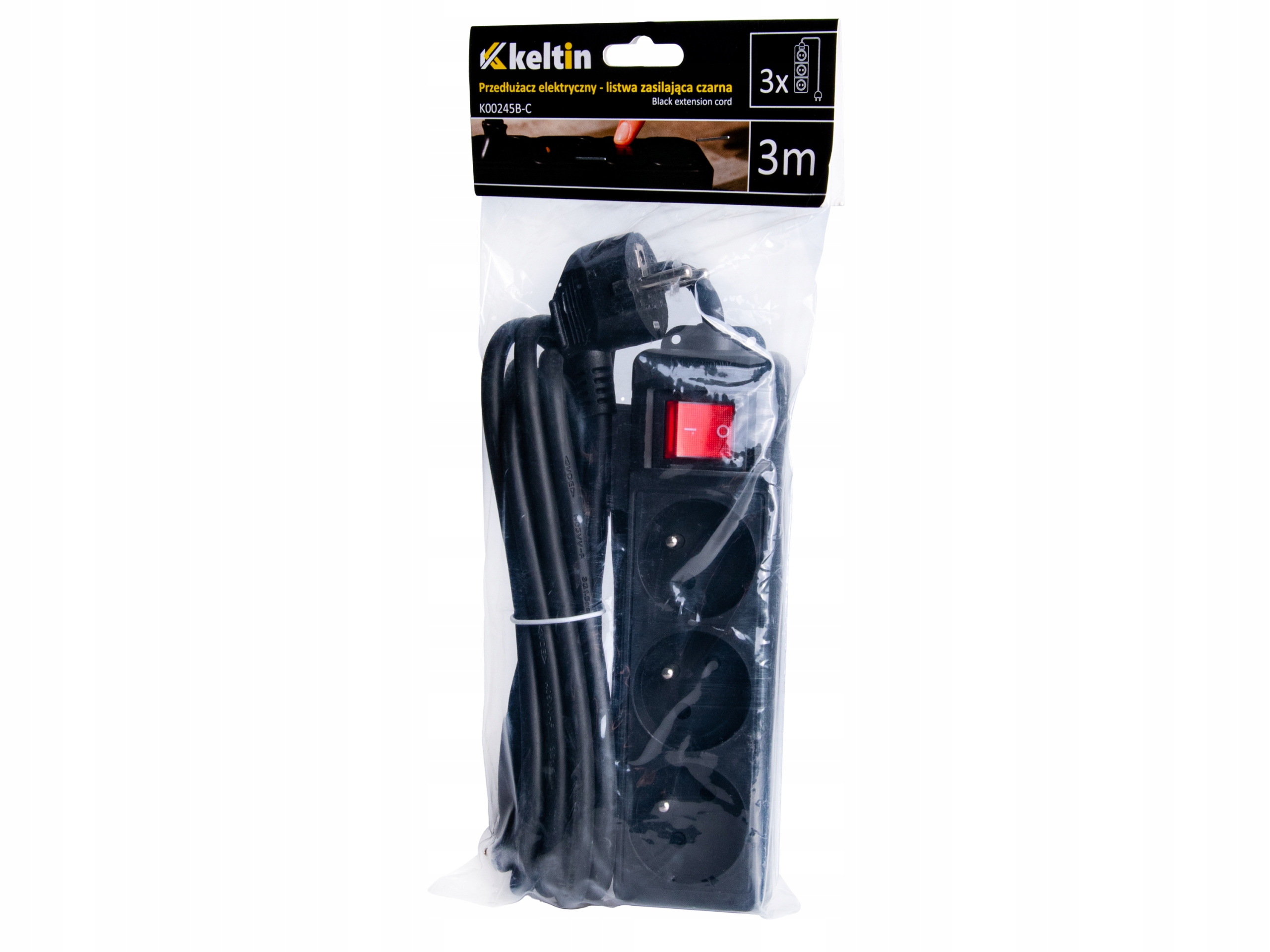 PRZEDŁUŻACZ ELEKTRYCZNY LISTWA ZASILAJĄCA czarna 3 gniazda 3m BEZPIECZNIK