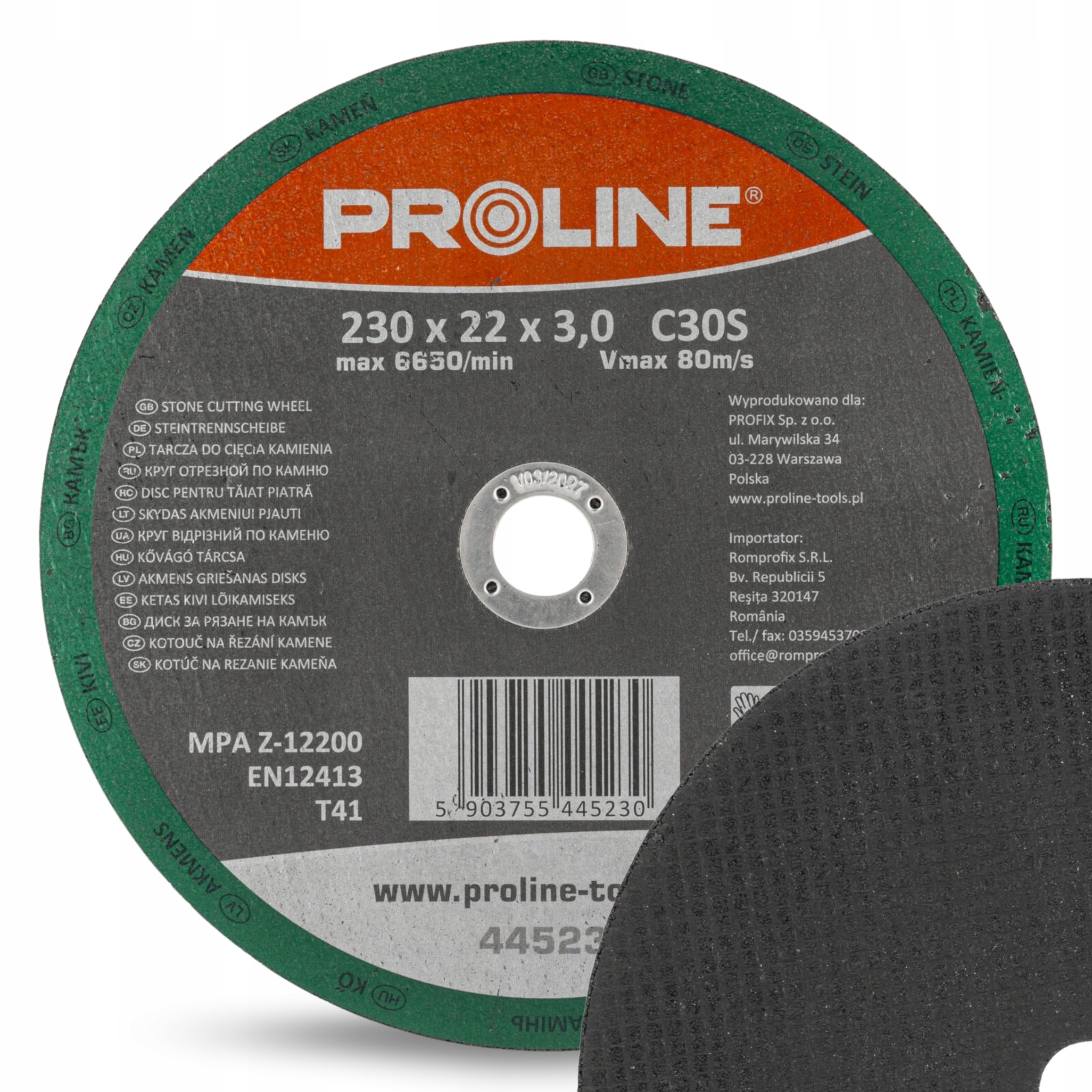 TARCZA DO CIĘCIA KAMIENIA MINERAŁÓW DUŻA T41 230x3.0mm PROLINE 1szt. MOCNA