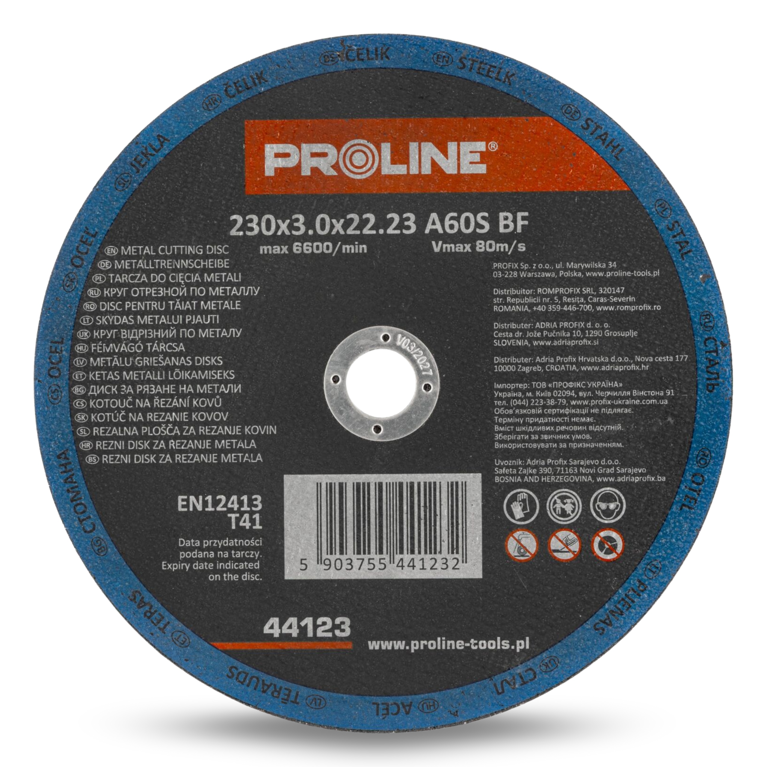 TARCZA DO CIĘCIA METALU STALI T41 DUŻA 230x3.0mm PROLINE 1szt. MOCNA