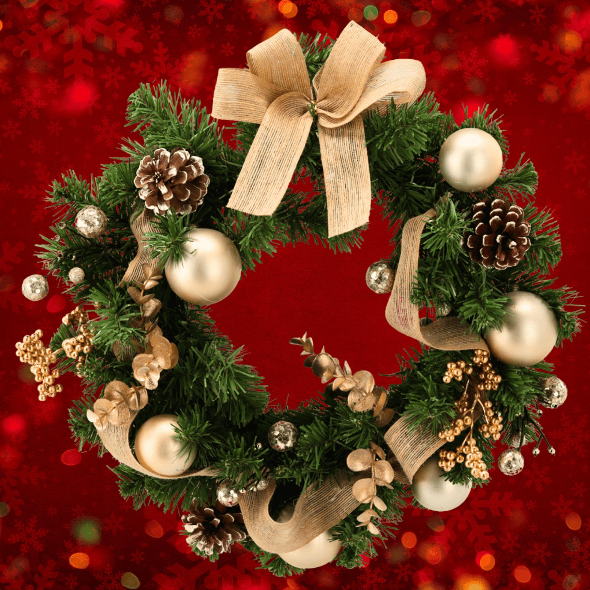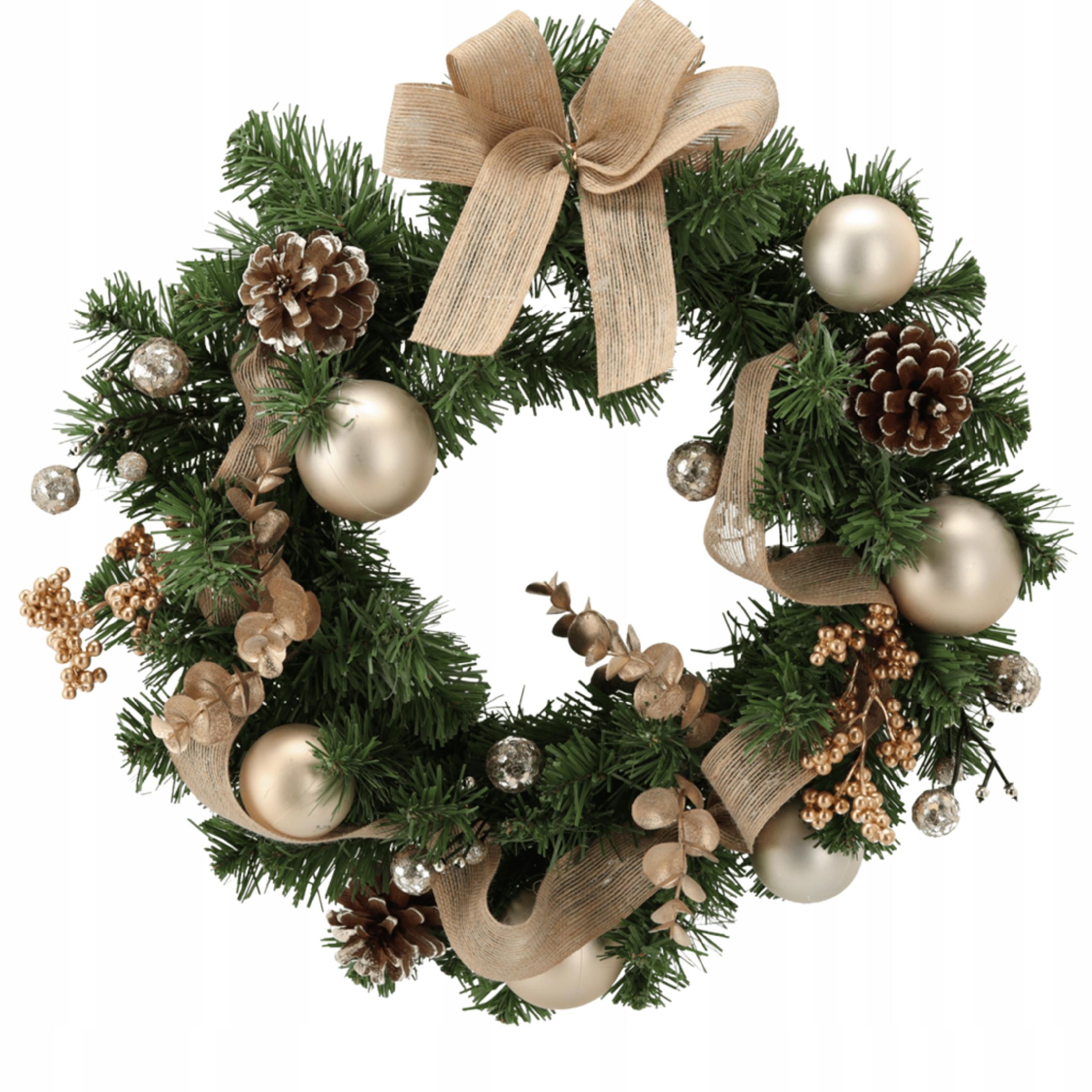 WIANEK / STROIK ŚWIĄTECZNY 40 CM ZŁOTY | 15 LED | NA DRZWI, STÓŁ, OKNO | SZTUCZNY | ELEGANCKA DEKORACJA BOŻONARODZENIOWA