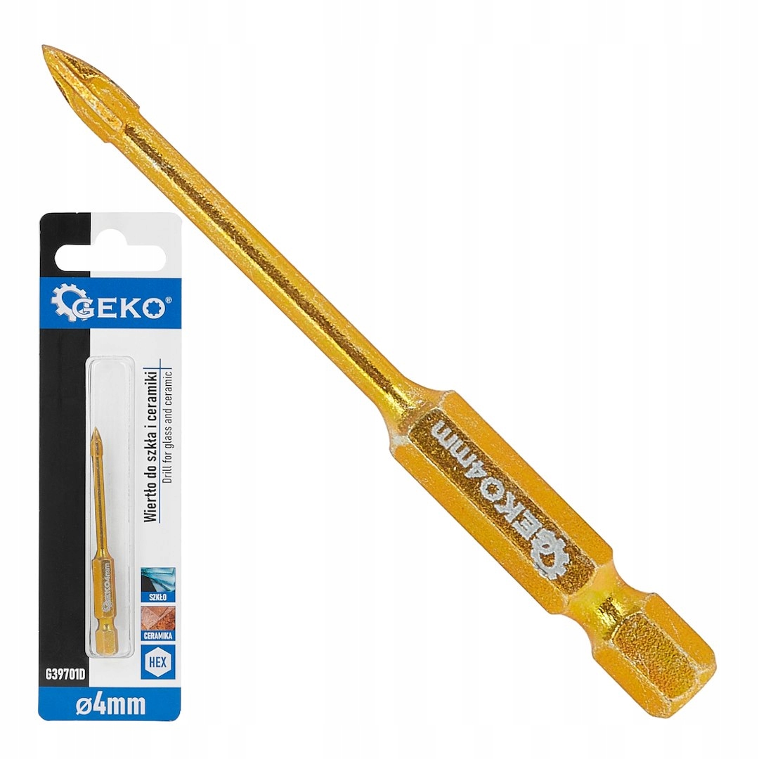 Wiertło marki GEKO do szkła i ceramiki o średnicy 4 mm, stworzone z myślą o precyzyjnym wierceniu w trudnych i kruchych materiałach. Dzięki zastosowaniu nowoczesnej konstrukcji z czterema ostrzami z węglika wolframu (TCT) oraz standardowym chwytem HEX, wiertło gwarantuje maksymalną trwałość, stabilność i dokładność pracy.
