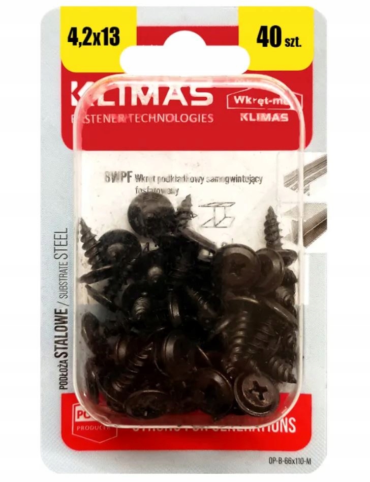 WKRĘTY PODKŁADKOWE SAMOGWINTUJĄCE 4,2x13mm PH CZARNE 40 szt KLIMAS