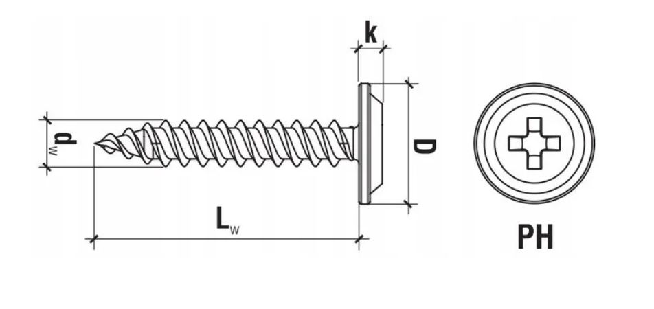 ✅ Łeb podkładkowy z gniazdem PH, zapewnia odpowiedni docisk elemenu mocowanego. Ułatwieniem przy montażu jest najbardziej powszechne gniazdo PH