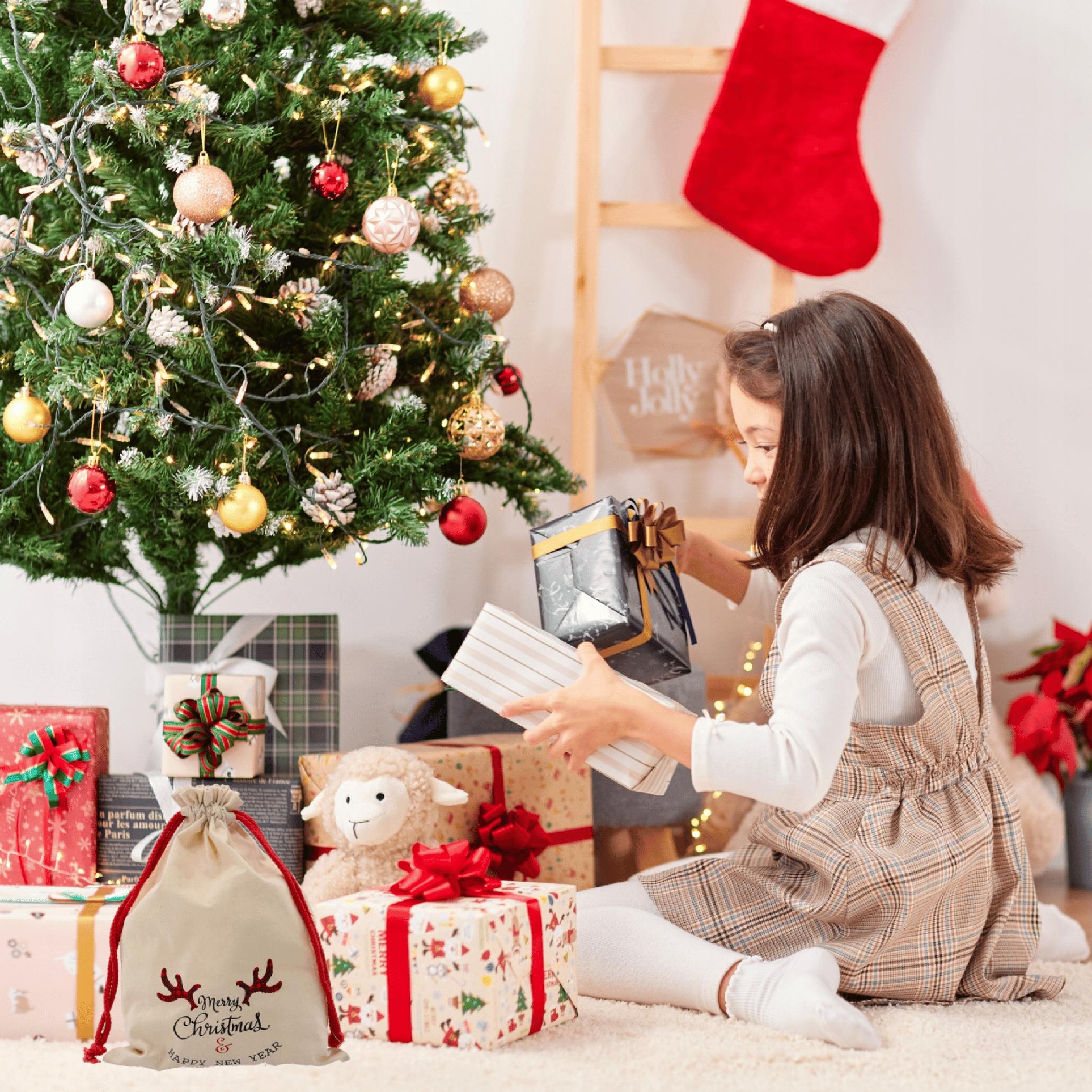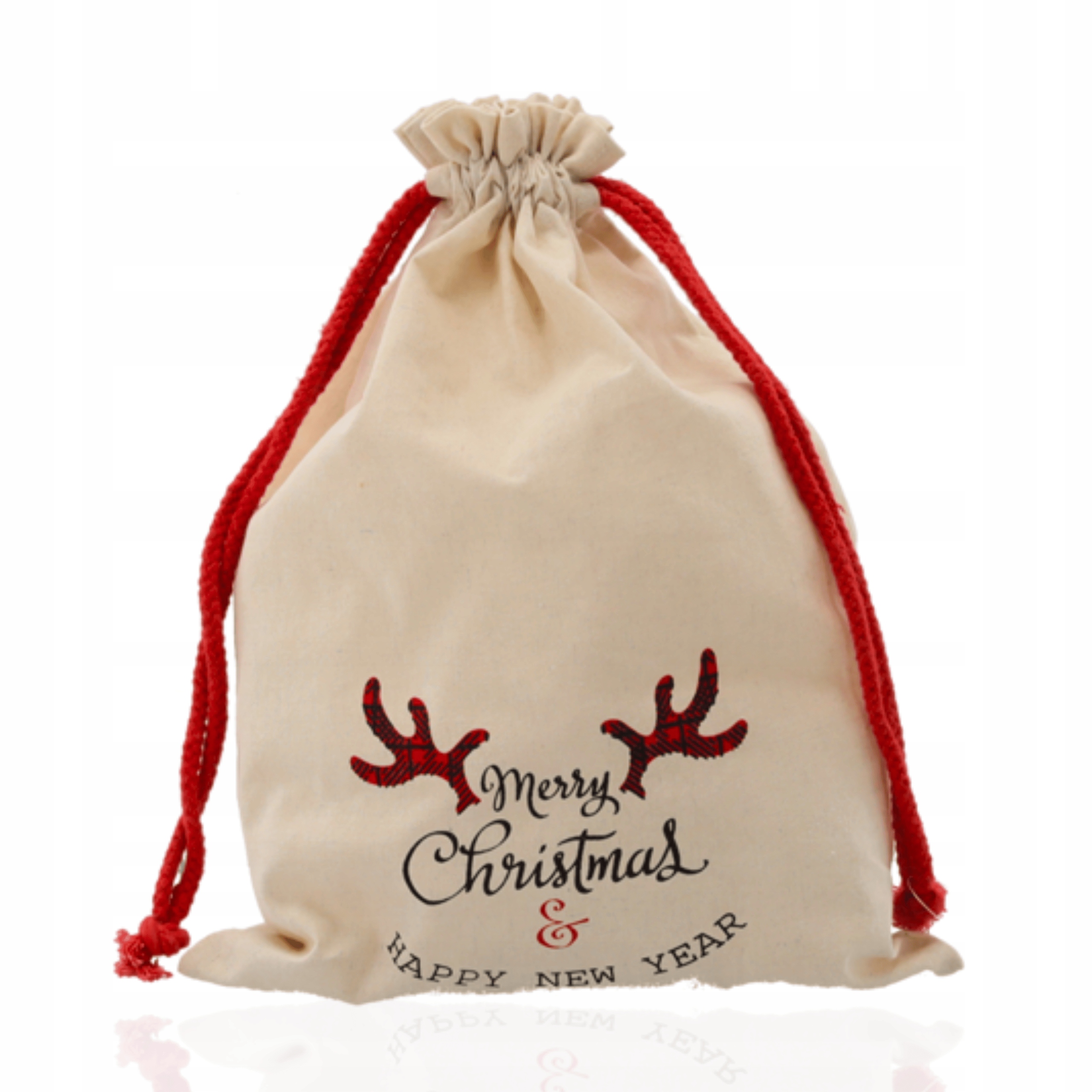 WOREK NA PREZENTY ŚWIĄTECZNY BAWEŁNIANY 28x40 cm | TORBA PREZENTOWA MOD. 3 | EKOLOGICZNY | WIELORAZOWY | XXL