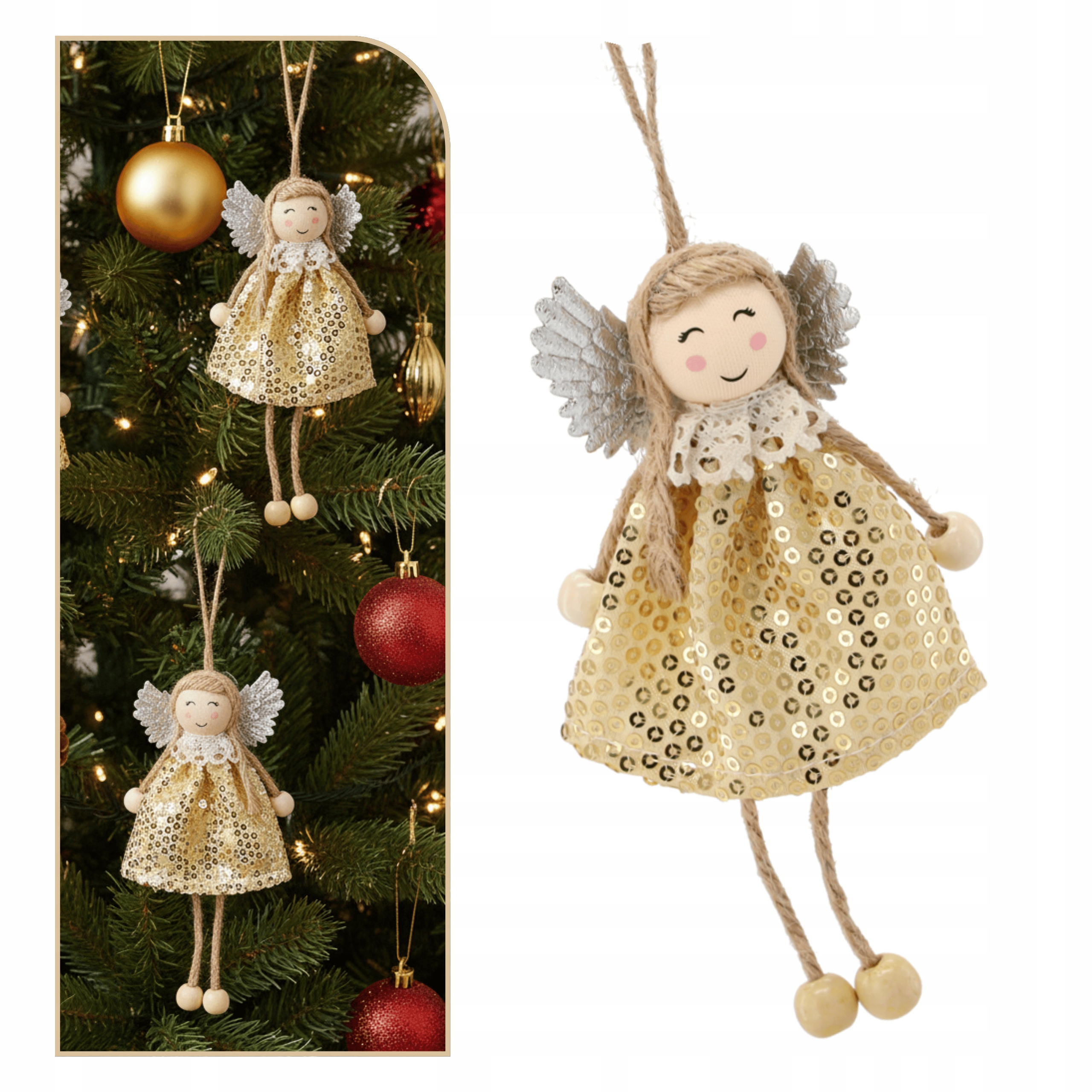 Aniołek w złotej sukience to subtelna i elegancka ozdoba świąteczna, która rozświetli Twoje wnętrze i wprowadzi do niego wyjątkowy, anielski klimat.