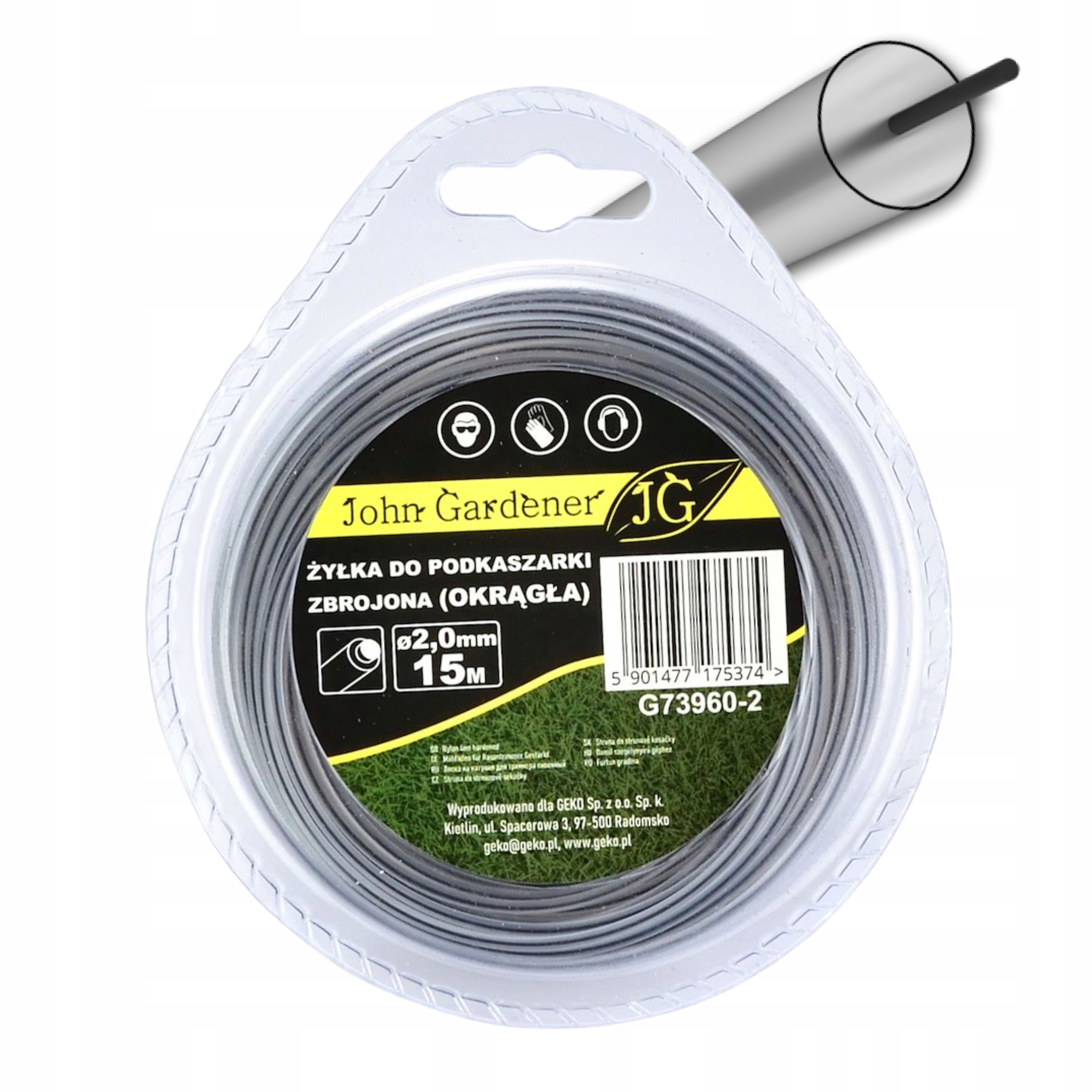 Żyłka tnąca o przekroju okrągłym z dodatkowym rdzeniem wewnętrznym i średnicy 2 mm renomowanej firmy John Gardener.
